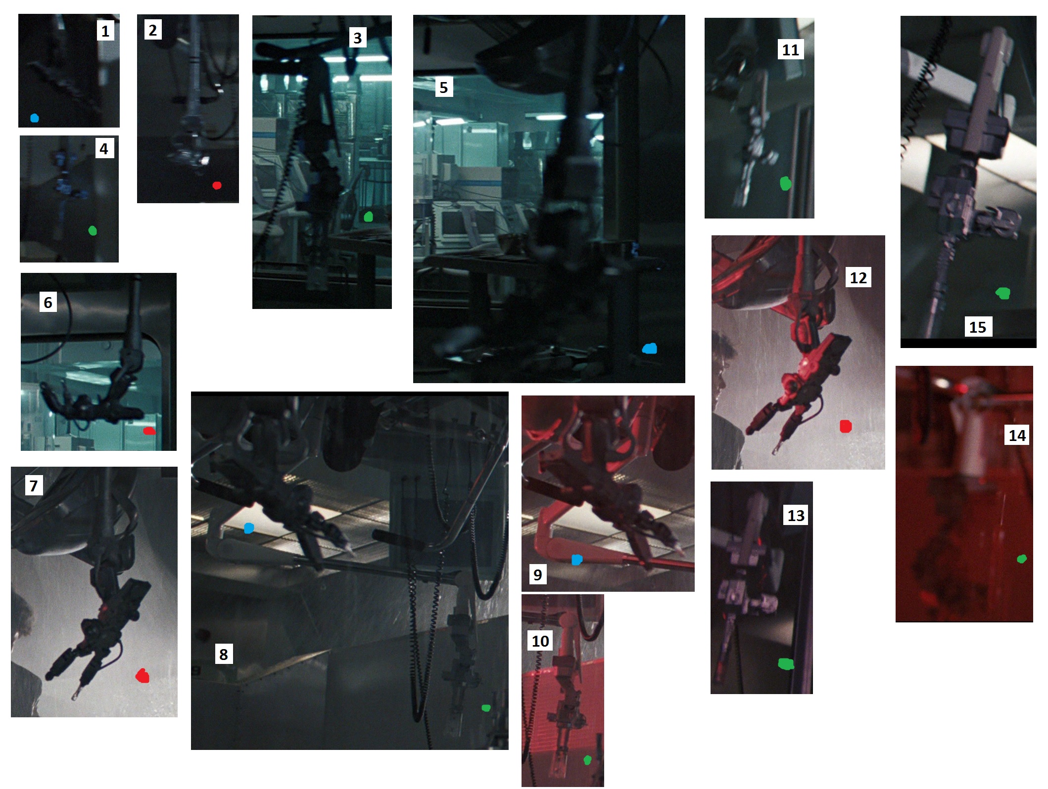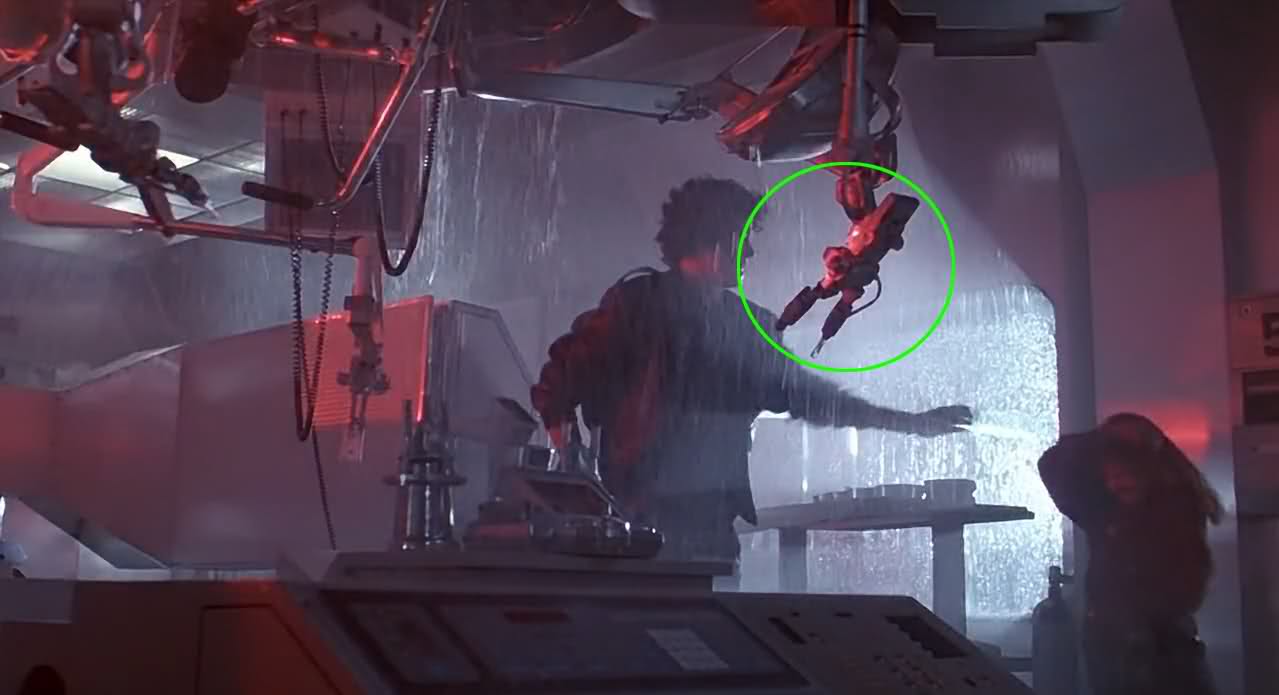 My screen shot shows the "curved" pose the robot's arms are in when Ripley brings Newt in for her nap. Later they are straight out during the Facehugger attack (see below). I'm not sure which way I like better honestly!