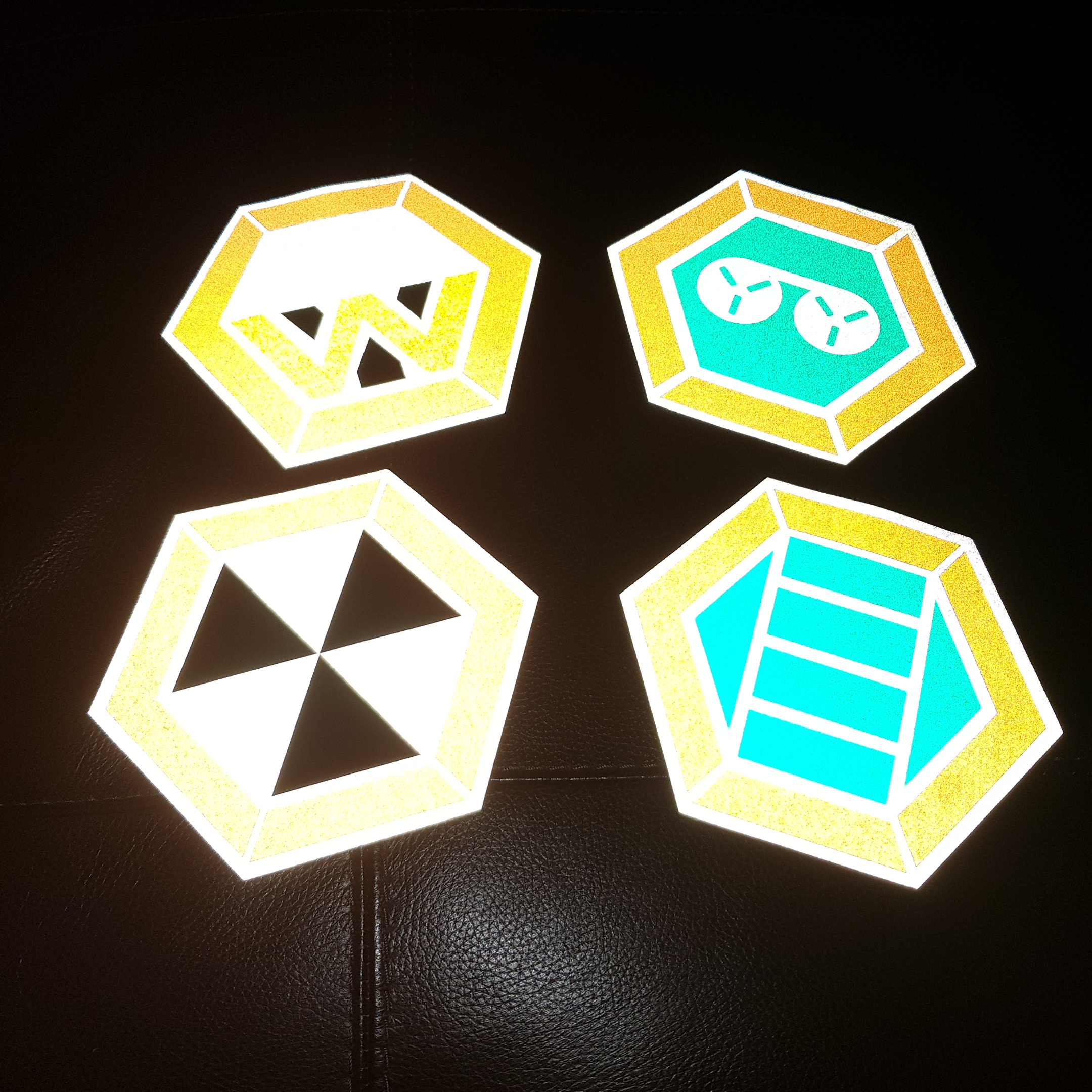 All scotchlite 3M reflective! Very happy with them. They were expensive to get all of the colours made in the 3M reflective material but it was worth it when looking at them it person.