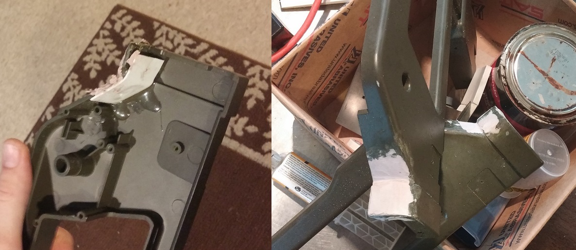 I swapped stocks for a sd studios stock and done the stock release button underneath mod. While the pr was stripped i went about rounding off the rear of the shroud which i used pvc pipe. Filled and smoothed it off nice with filler. When i went to test fit the shroud the stock button mod is on the outside of the shroud further towards the back of the pr.