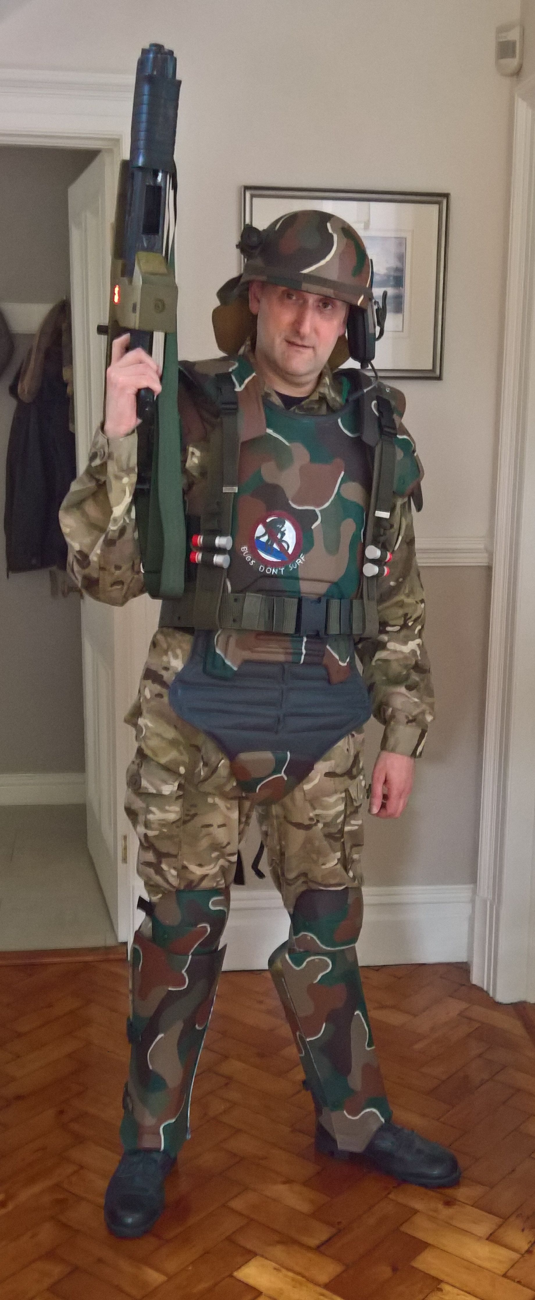 I have a set of colonial marine armour I'm in the process of upgrading (new paint, trimmed grieves). I've attached a image of what it (and me) looked like before the upgrade began. I'd really like to be able to join in with the UKCM so I'll probably have a lot of questions about getting hold of other bits to go with the armour to bring it up to a suitable standard in the future.