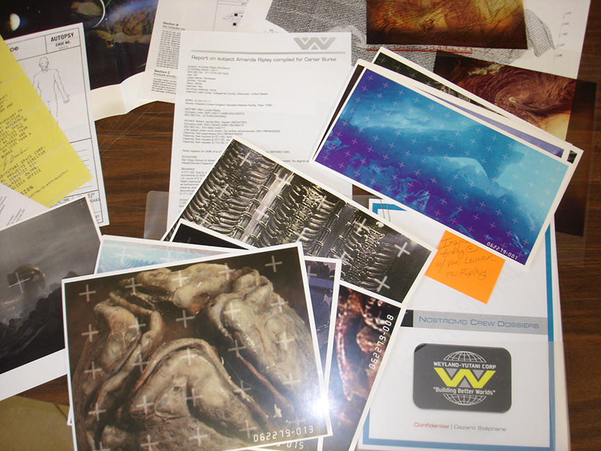I've been working on this off and on for many many years....maybe 10 or more. Finally have it to a point where I might be finished with it. I made this with the idea in mind of what you might find on a WY office desk. It contains various print-outs, photos and reports regarding the events following up to and during ALIENS. The one part I CANNOT take credit for, is the WY personnel report you see with the orange sticky note on it in the lower right-hand corner. I believe someone here made that, I printed it off to help fill the folder.