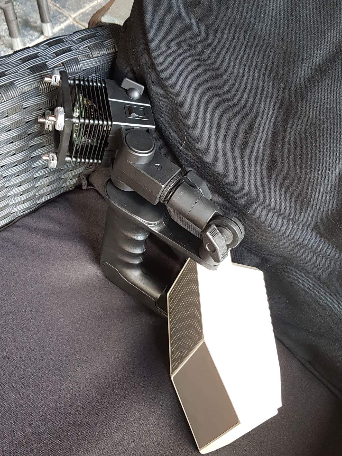 I used a 8mm threaded rod for the lamp arm and a 5x30mm allenscrew for the handle to fix it all in place,and its not moving.I will also be putting some small screws in from the inside throught the box into both sides of the grip just to stabelize the handle and allso a small grub screw in the small part of the light arm from underneath just to give it all more stabilitey becouse sooner or later from the weight of the lamp arm it will all start to wobble and droop.