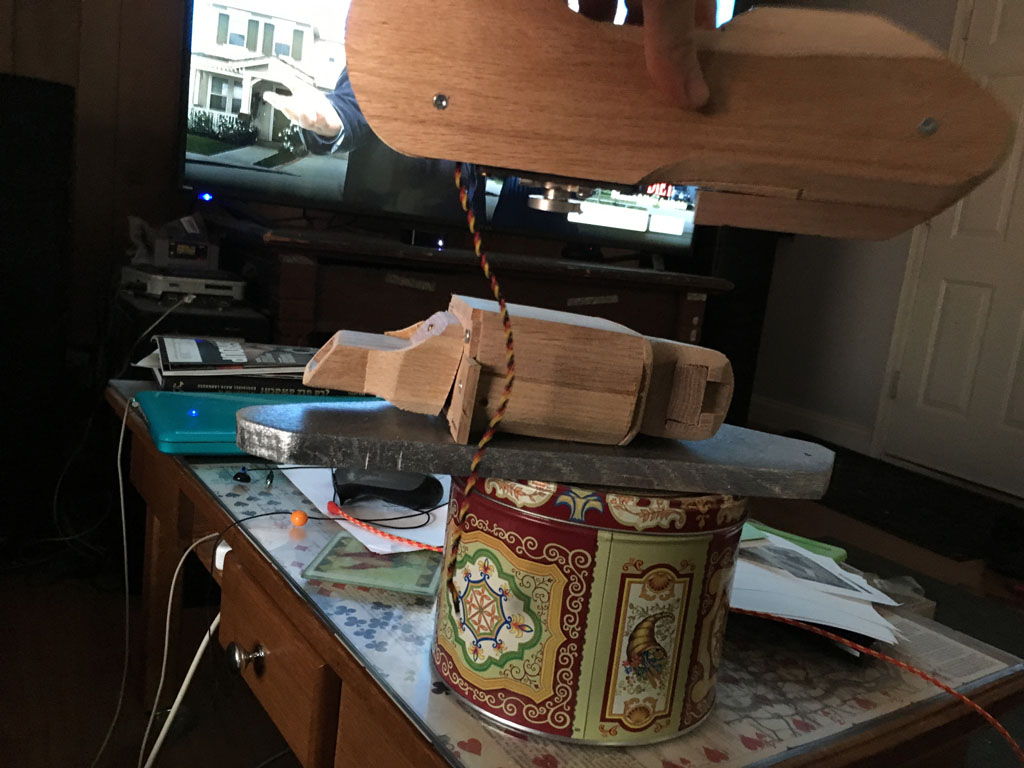 assembly is together. I had to cut things down to fix some counterbalance issues. I have things very close size wize to what we saw in the movies. I will have to research some beefier servos at a later point but I doubt folks want to spend a 100 on a single servo versus 40 when the things like to break every now and then.