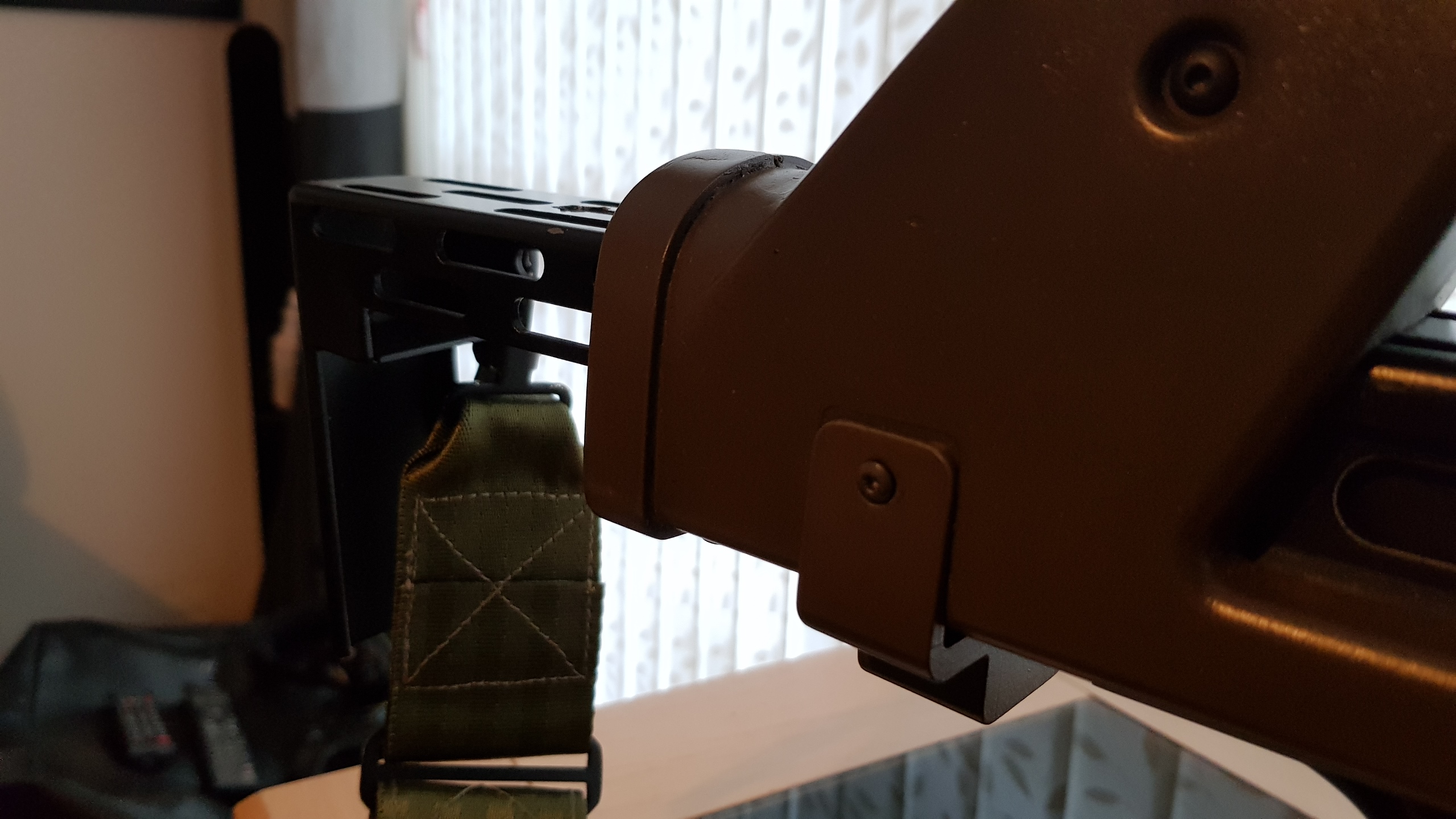 The drawback is to get it as flat as it should be, you have to delete the stock's locking mechanism. You will need to figure out another way to hold the stock in place if you want to keep the 'adjustable' function. (I was outfitting these shrouds to fit the HCG thompson, so I didn't care about deleting the stock lock)
