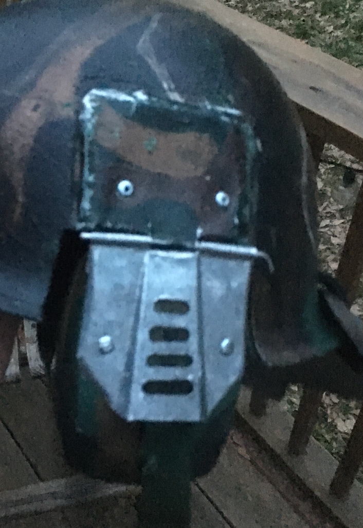 Dont try to fit the top part to the helmet after its attached. round it extra and the rivets will pull it into shape. I kinda messed mine up by smacking it with a hammer once it was in place.