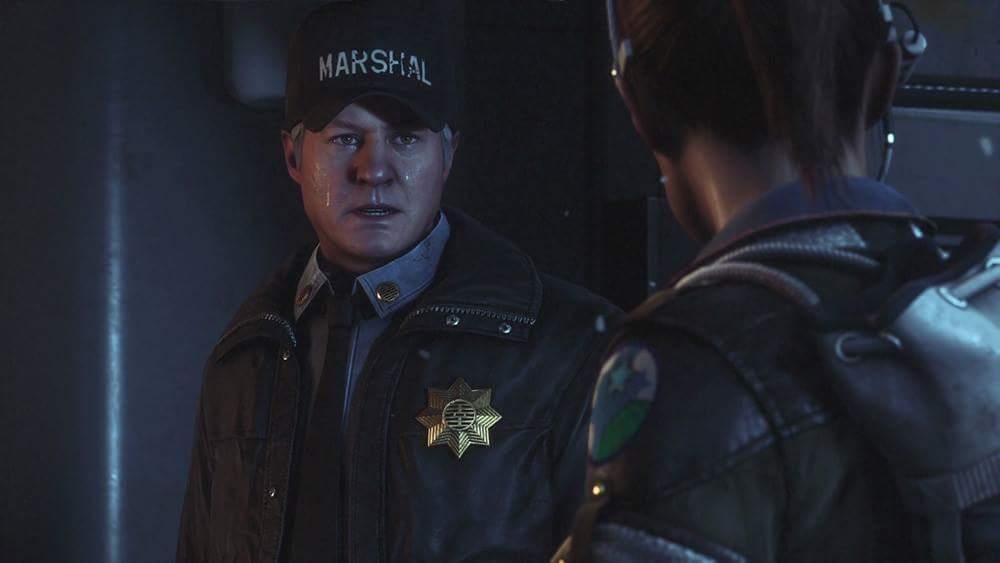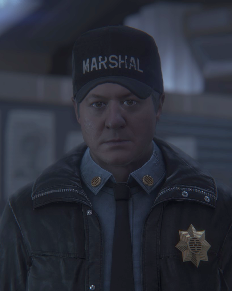 Here are a few reference shots of Marshal Waits from Isolation. If anyone has clearer shots of his shoulder patches I would be very excited to see them. I am still on the lookout for a closer match on the jacket, but this leather one is still in keeping with the feel of the Marshals.