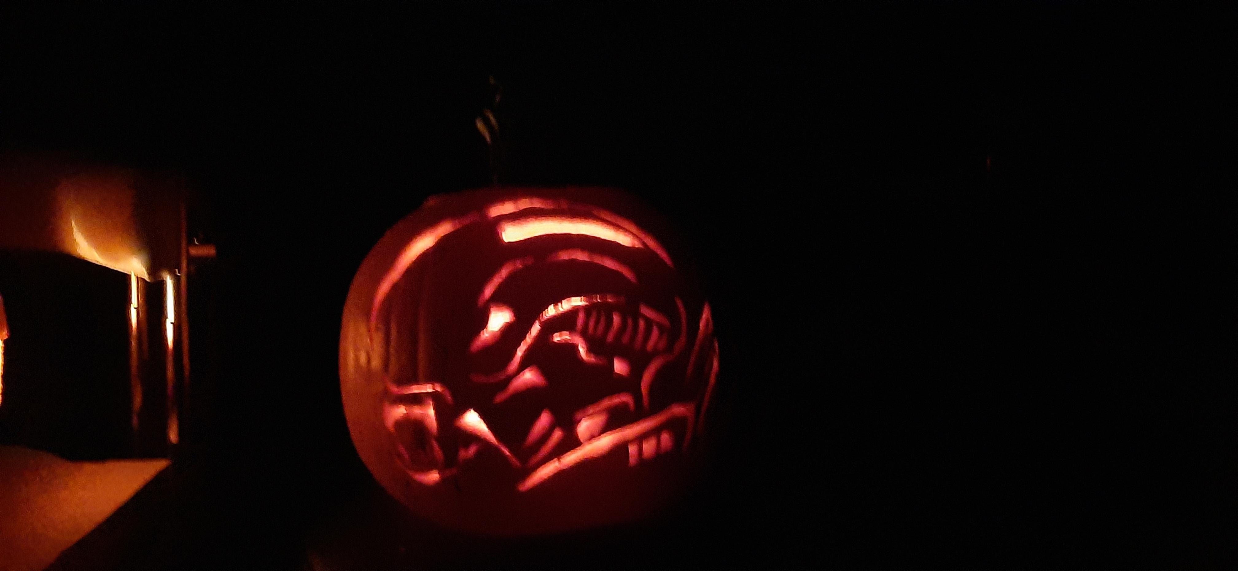Hey all, just posting my first pumpkin carving. Wanted to do a xenomorph. I was worried it wouldn't come out right. But I was pleased with the outcome. I was wondering if you all have some pumpkin art you wanna post.:)