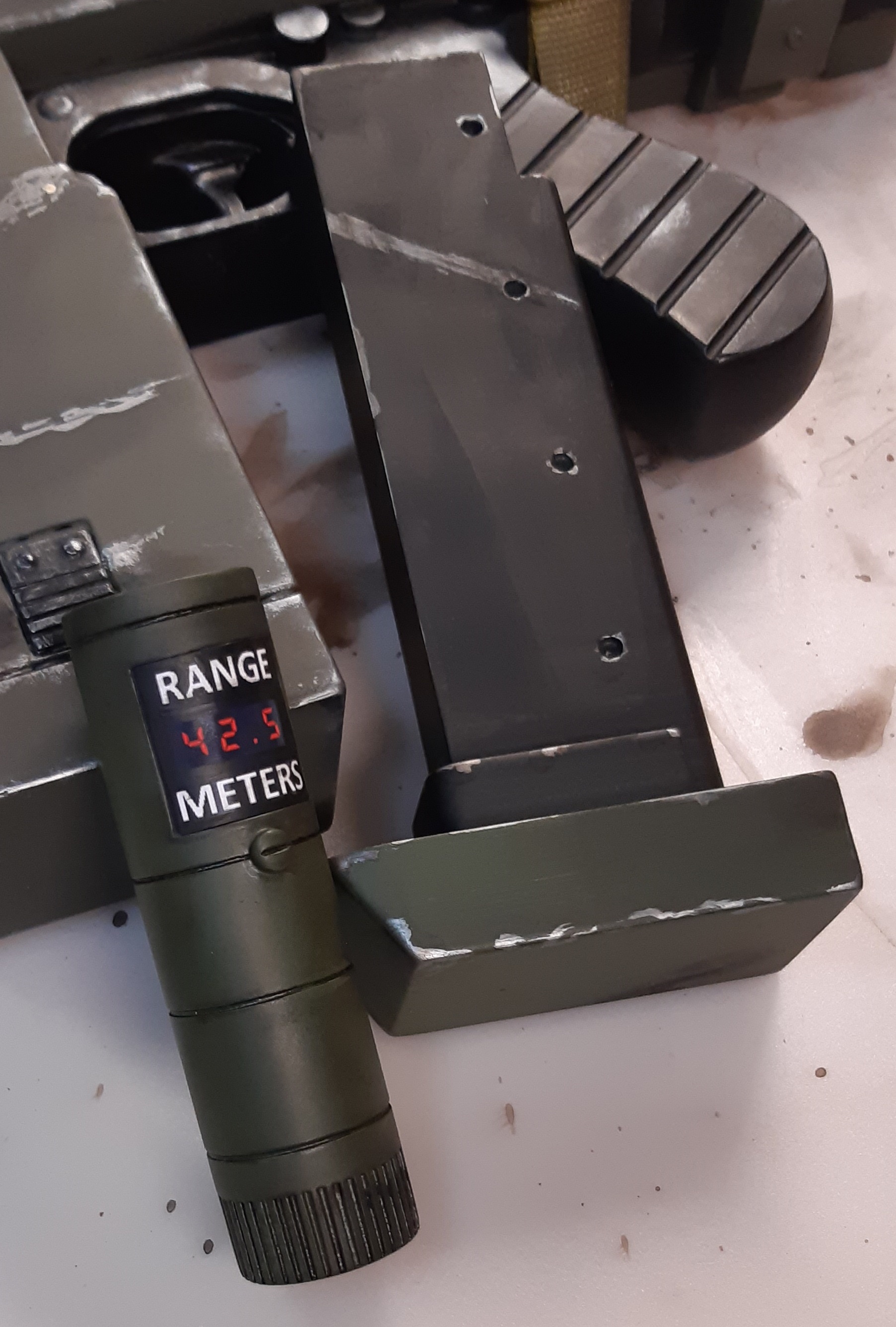 Paint done on the locator and mag. I will do a hollow version down the track and use a 3 digit led display to do real numbers with a curved lens on top.