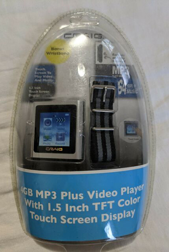 It has a touch screen, accepts MP3, JPG and AVI video files.
