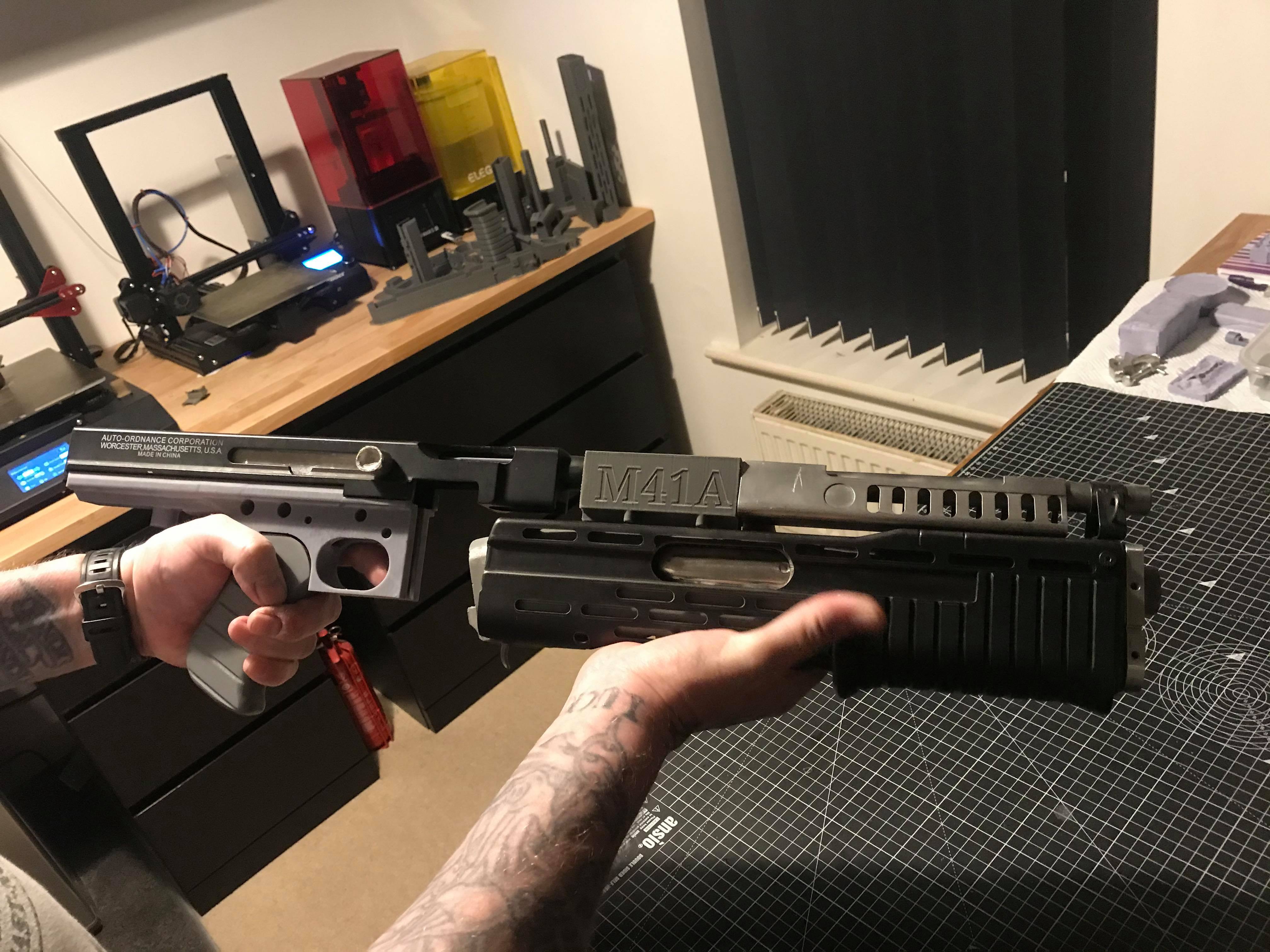I've followed the RPF thread. But I would love to see a pic of the paints and products that you used.and your airbrush n tools. This thing does NOT look like filament, it looks like heavy metal. If I build one I wanna focus on getting a finish like that. It looks better then some of the mass produced pulse rifles. 3D modeling and printing changed the game here recently, especially martinr1000, smartazzgunner and some other guys, but this raises the bar for what can be done with a final finish.