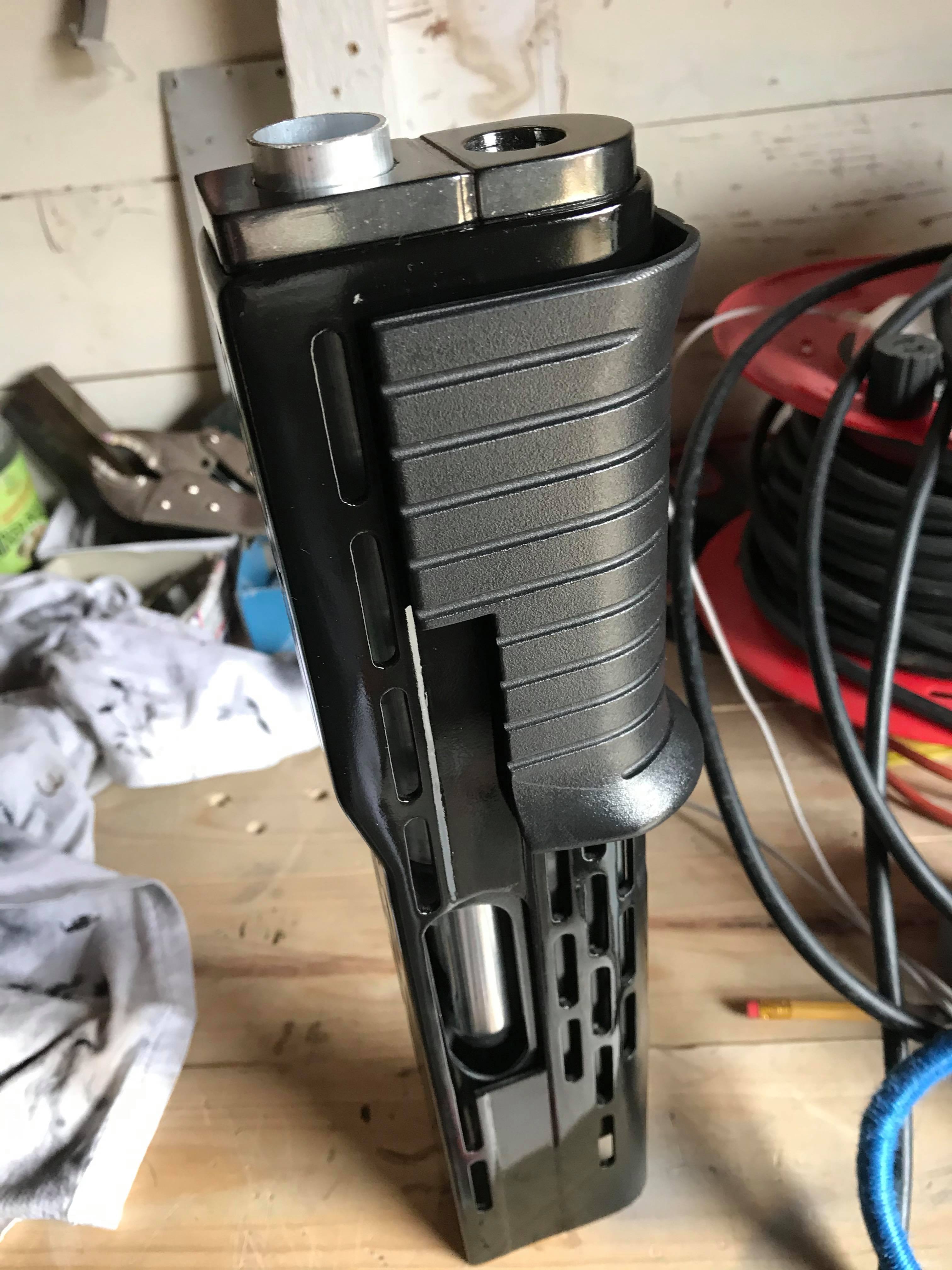 Shoehorned the Airsoft trigger assembly into a resin and pewter Remington receiver