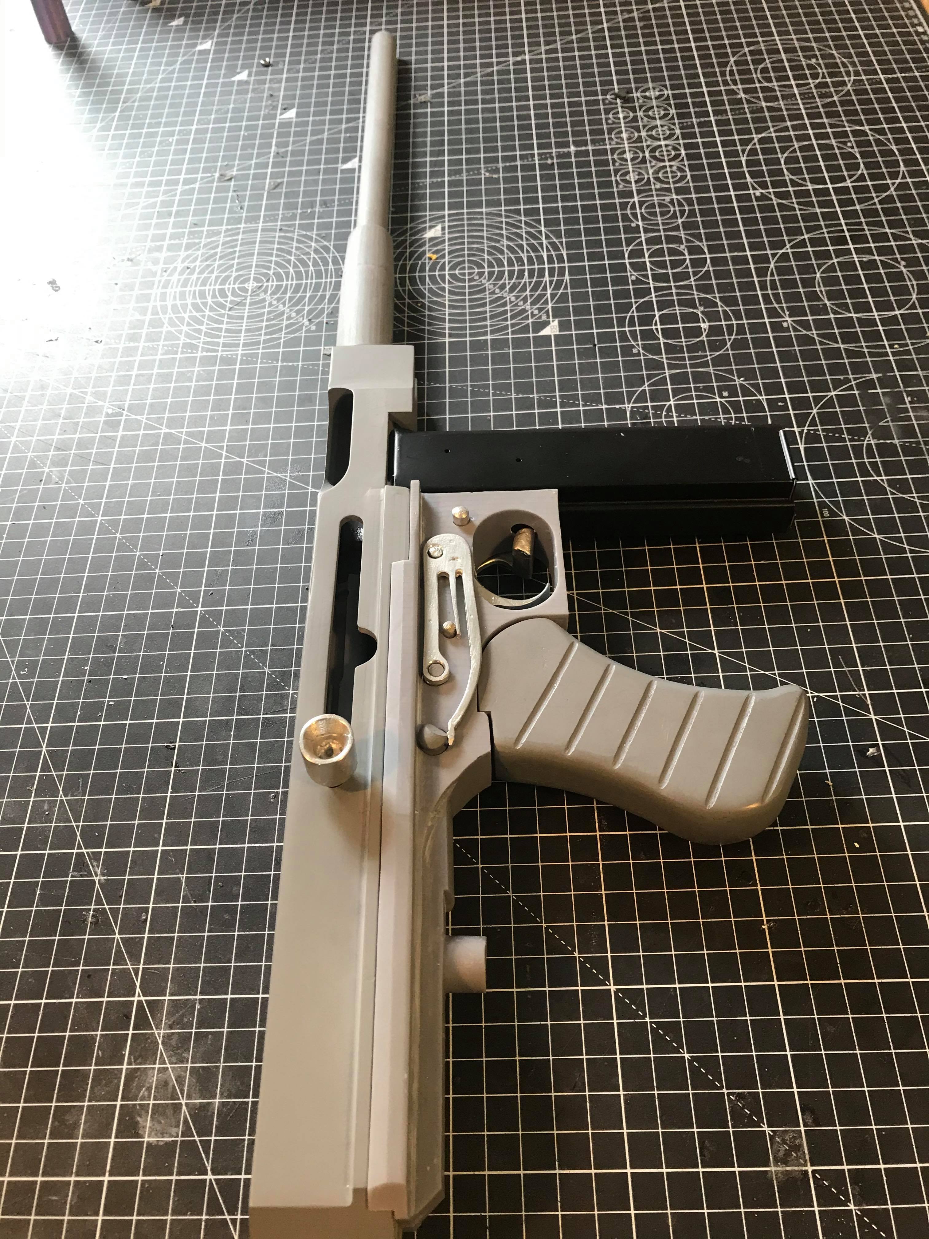 Pla+ shroud painted in humbrol Brown Bess, resin printed pump grip and cage/ receiver all part of a build for a customer and good friend.