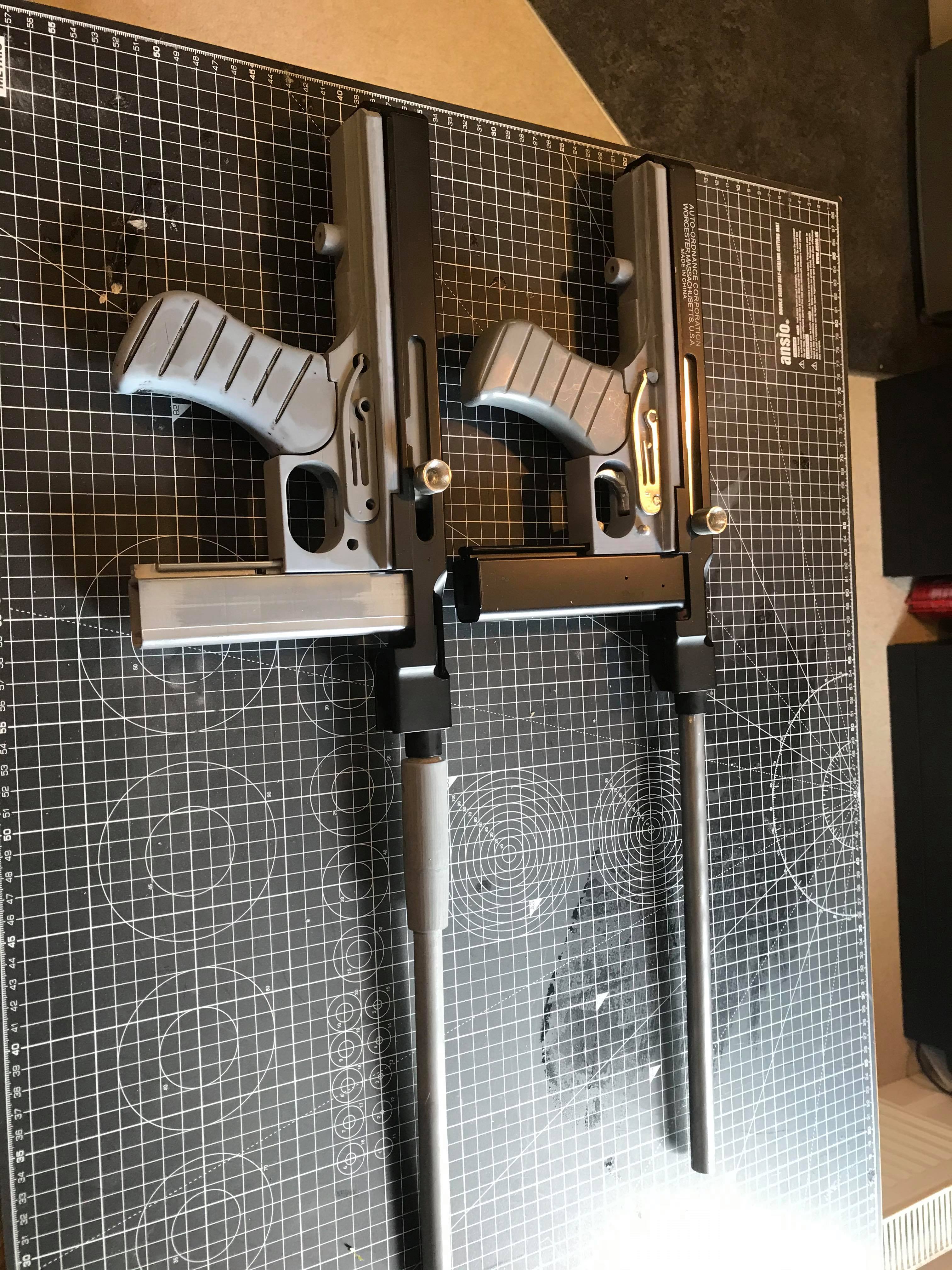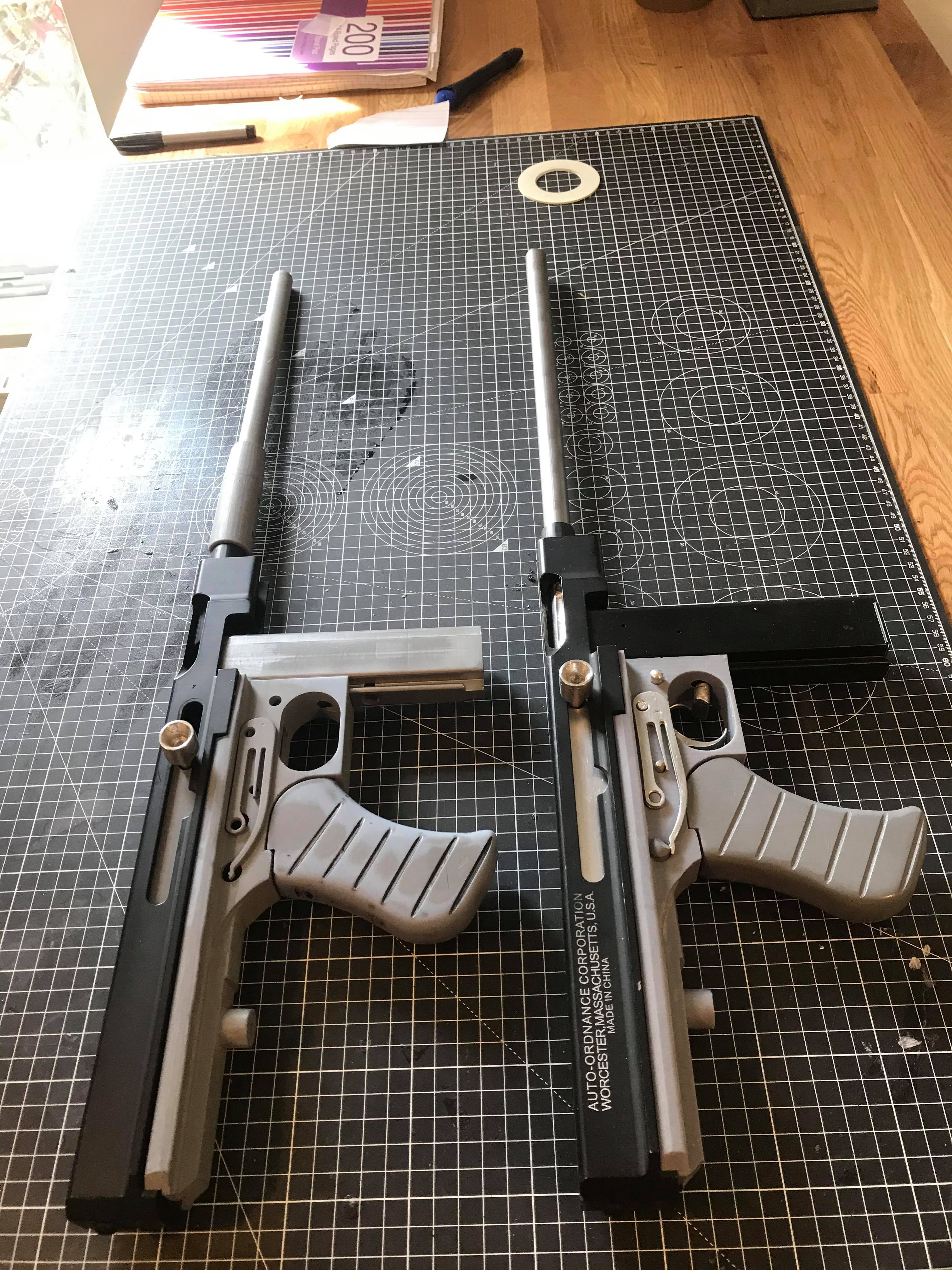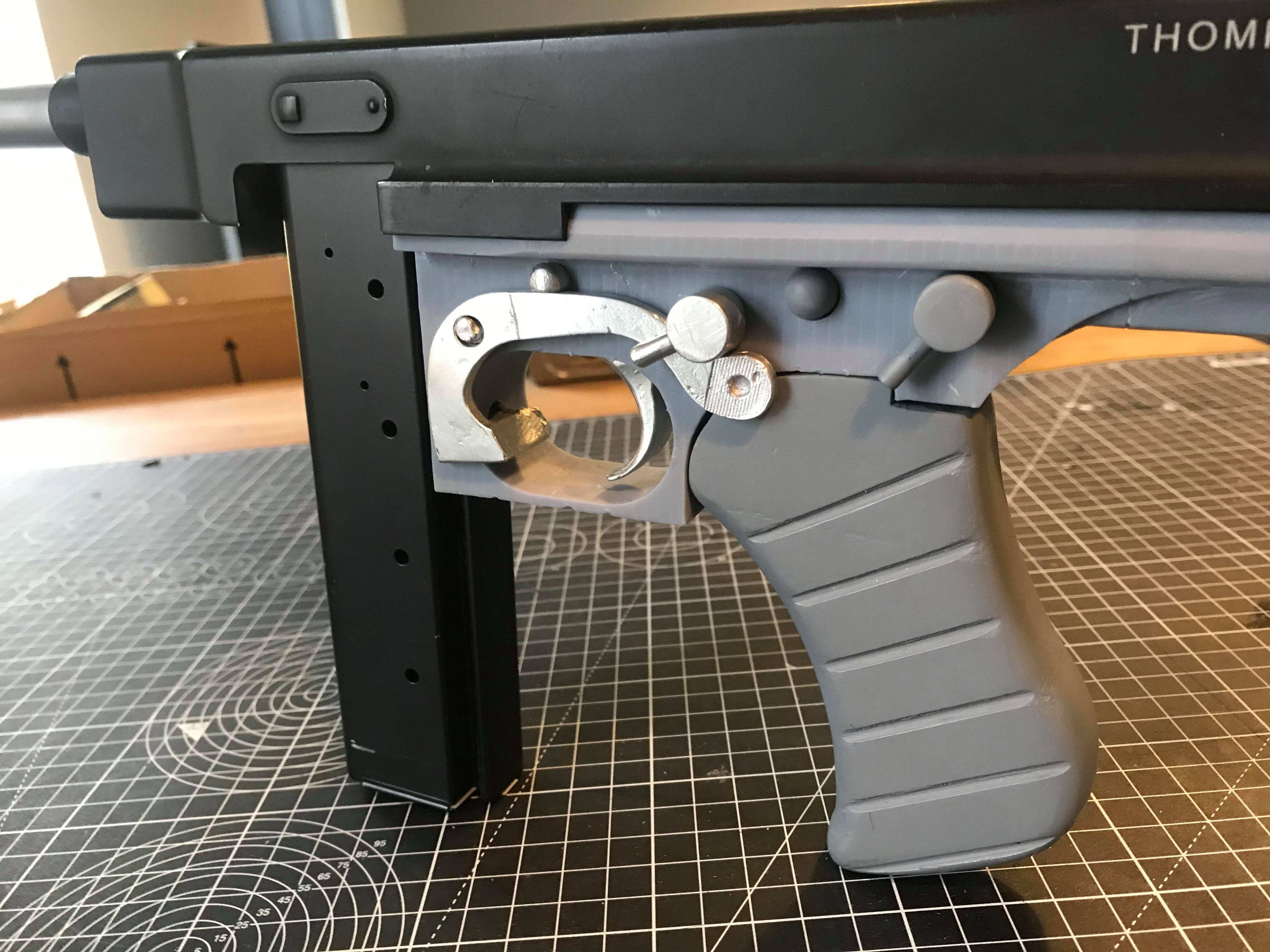 Couple of metal Airsoft Thompson receiver conversions using printed resin and cast pewter parts