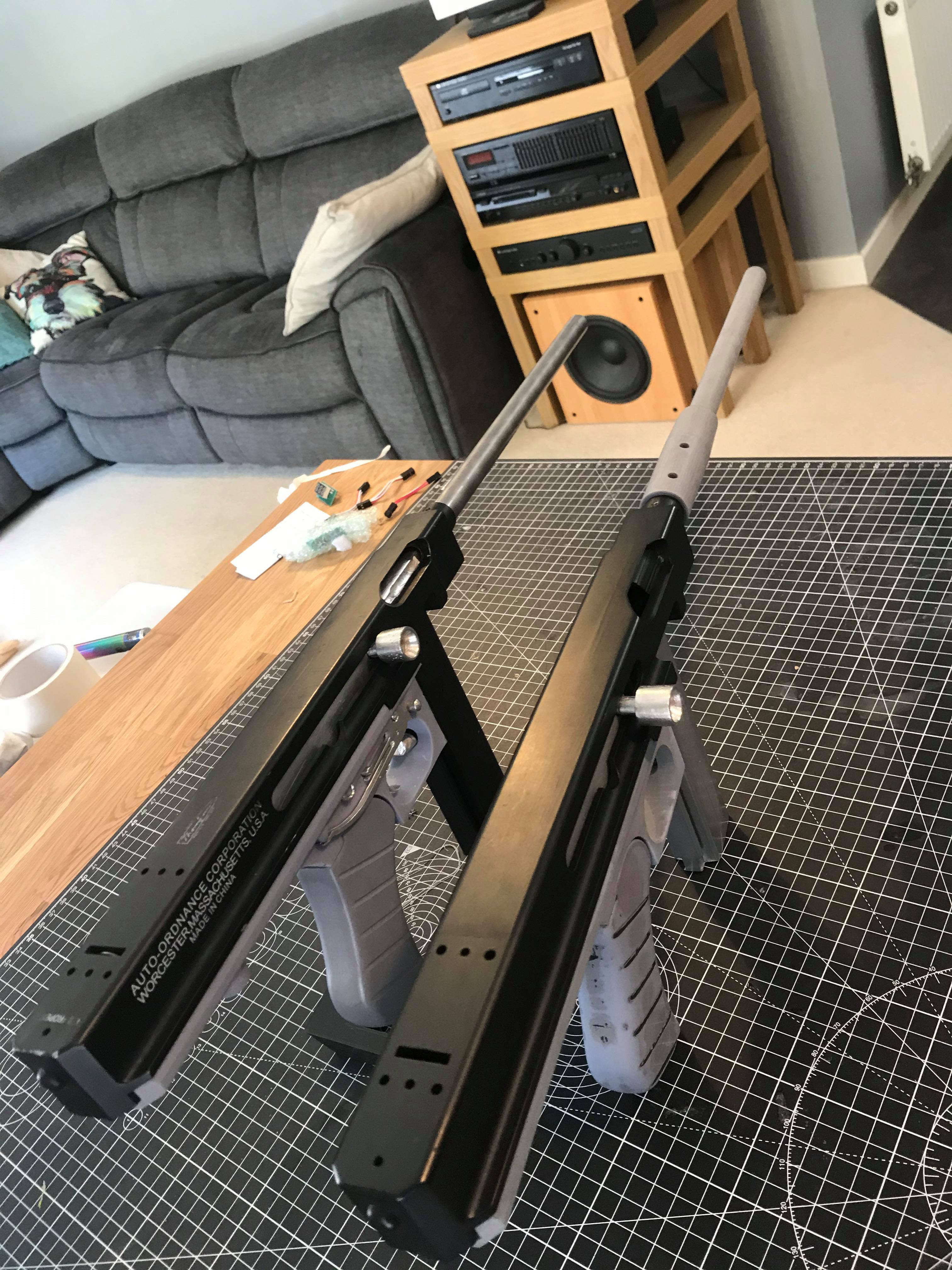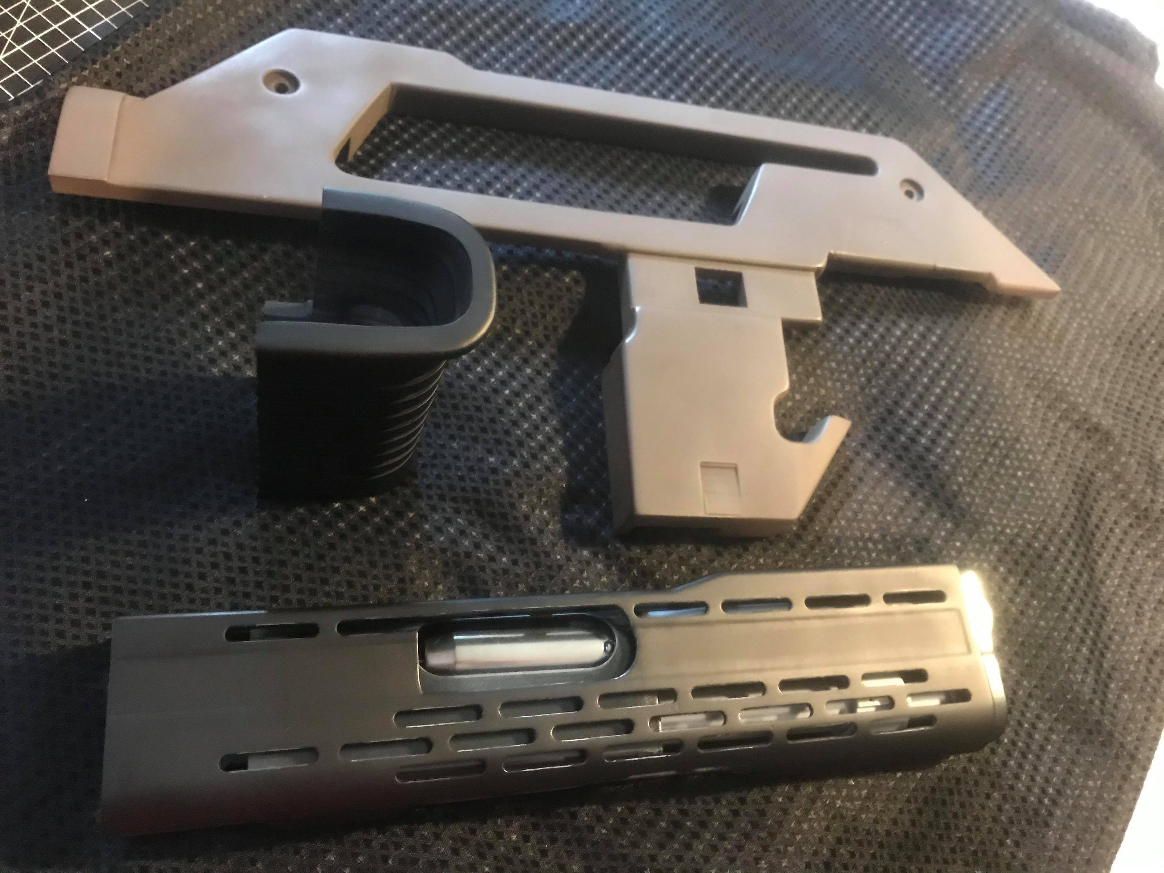 Pla+ shroud painted in humbrol Brown Bess, resin printed pump grip and cage/ receiver all part of a build for a customer and good friend.