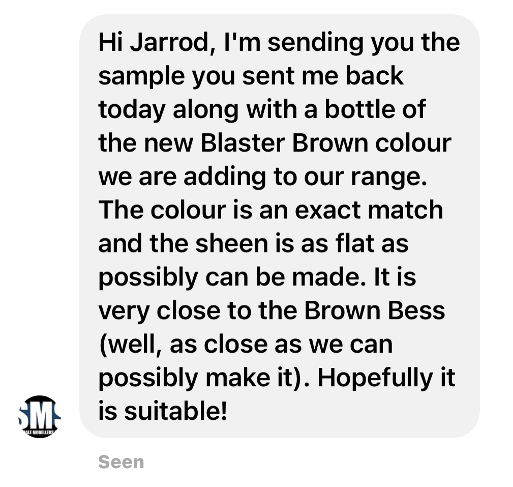 Post subject: Re: Brown Bess / blaster brown SMS paints