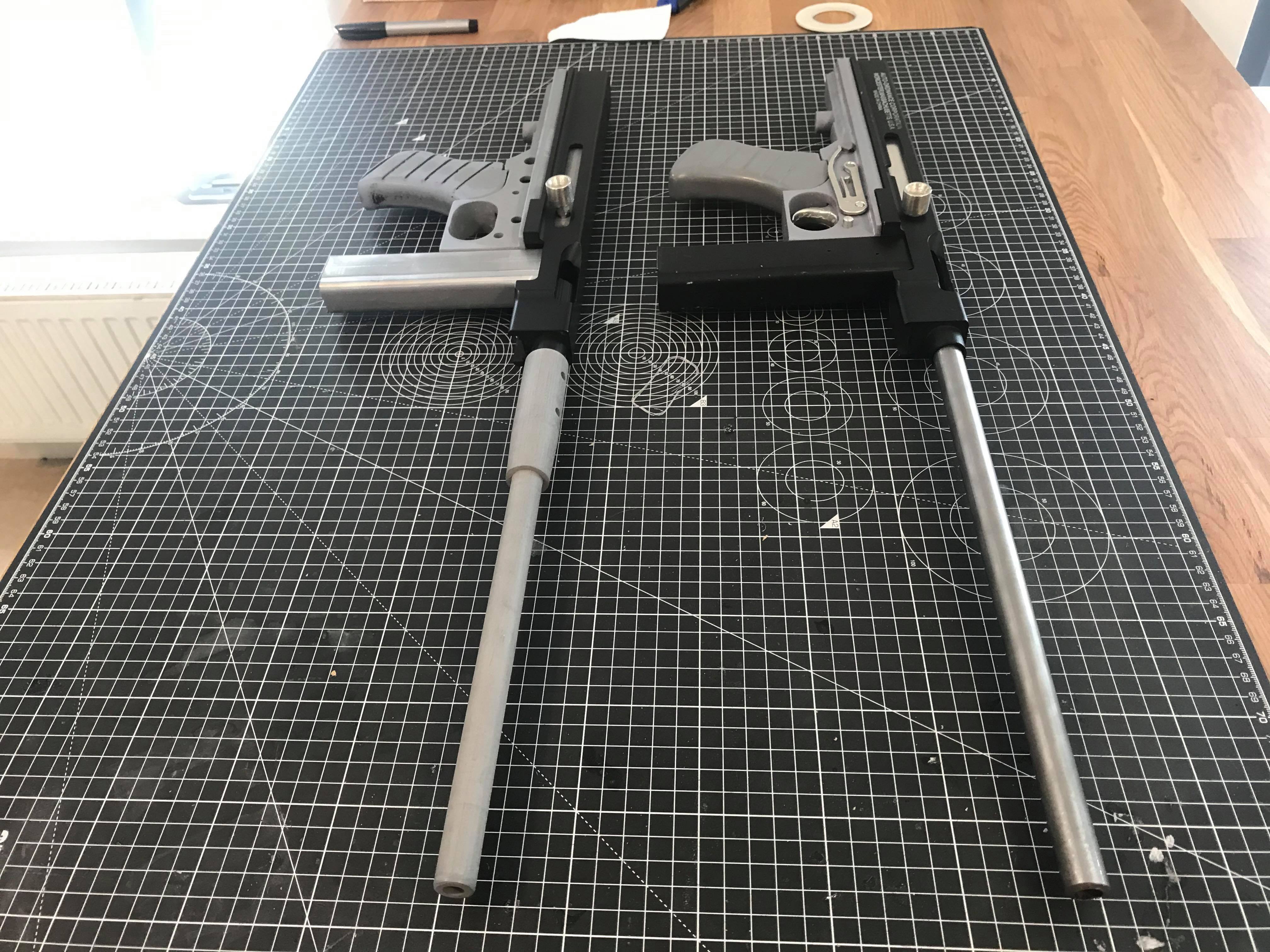 Couple of metal Airsoft Thompson receiver conversions using printed resin and cast pewter parts