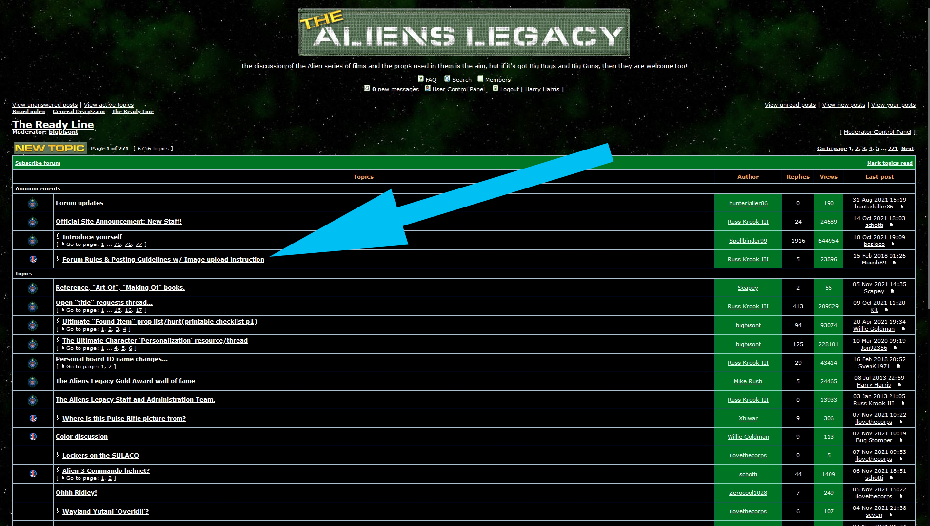 The discussion of the Alien series of films and the props used in them is the aim, but if it's got Big Bugs and Big Guns, then they are welcome too!
