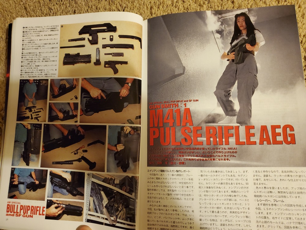 Sorry for the delay. I get home from work around 1:40 AM, so it's easy for things to slip my mind. However, turns out I was right. The image is from the July 1994 issue of ARMS Magazine, which had an article on Bullpup and SF guns. Had a short article on the original prop, as well as an article on how to make a pulse rifle AEG, basically from scratch, since this was written a decade or two before Snow Wolf produced theirs. I took a few quick pics of the relevant articles, but am having trouble posting the images. Perhaps someone can refresh my memory on how to do it. I've got them on imgur.