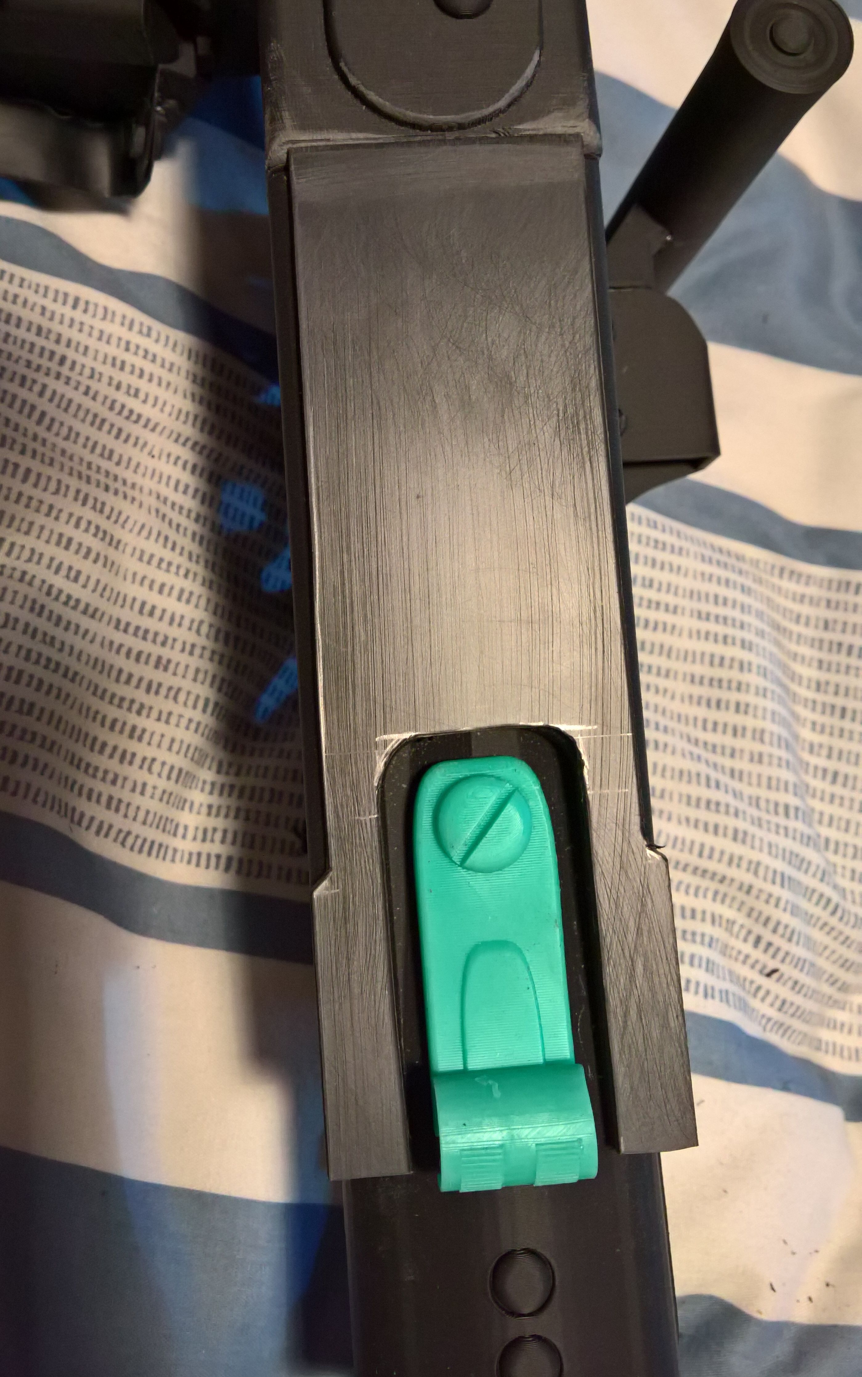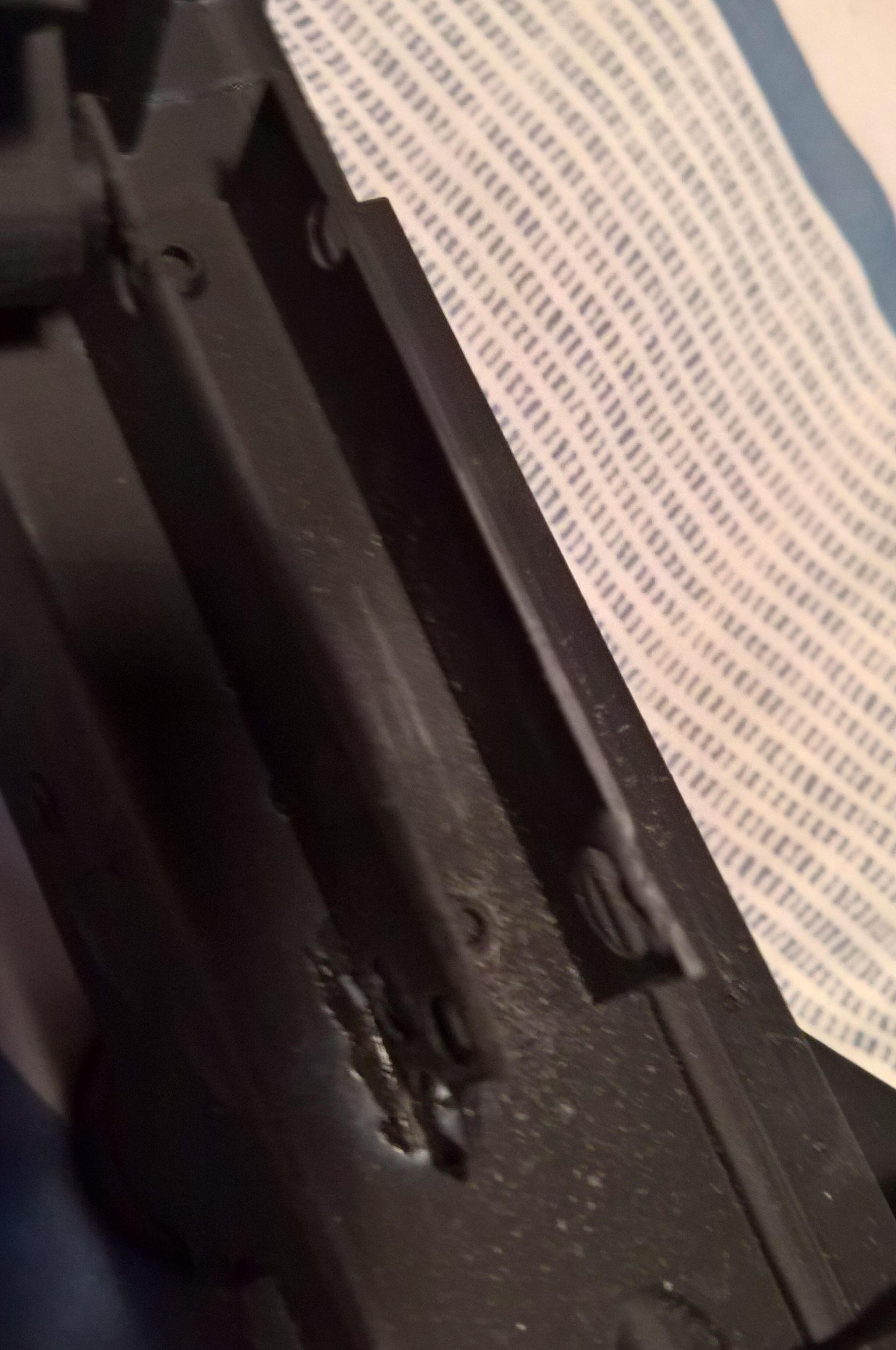 The first of these is the detail on the top of the gun just behind the forward grip. I placed a piece of this along the inside of each vertical side.