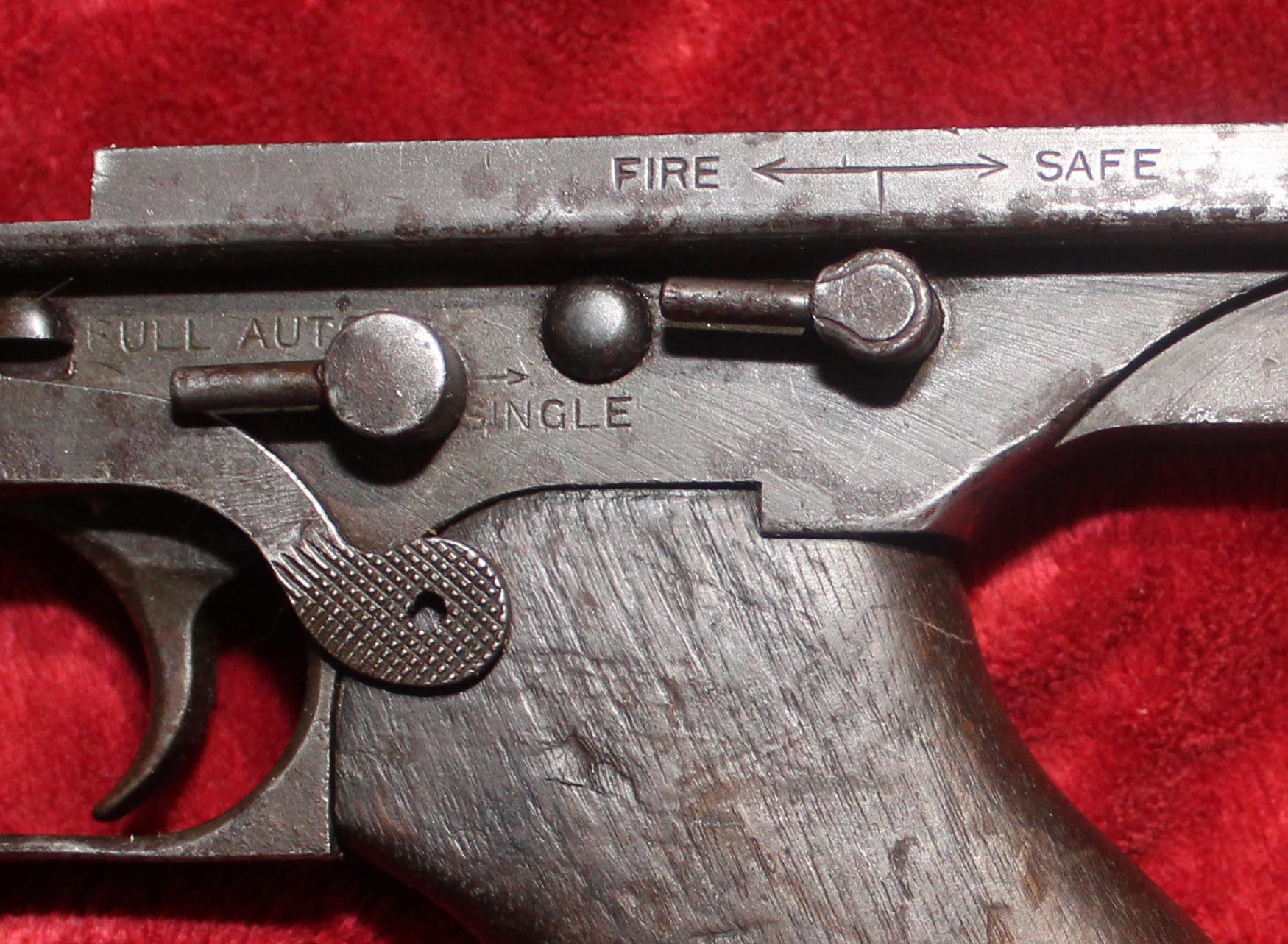 Not sure if this is unique to Auto Ordnance M1A1. Google only found pics of M1A1 with the normal safety lever. However, the almost straight "bridge" just behind the grip seems to be unique to Auto Ordnance M1A1, but there are also Auto Ordnance M1A1 with the more curved look. So I guess the design elements can depend on several factors.