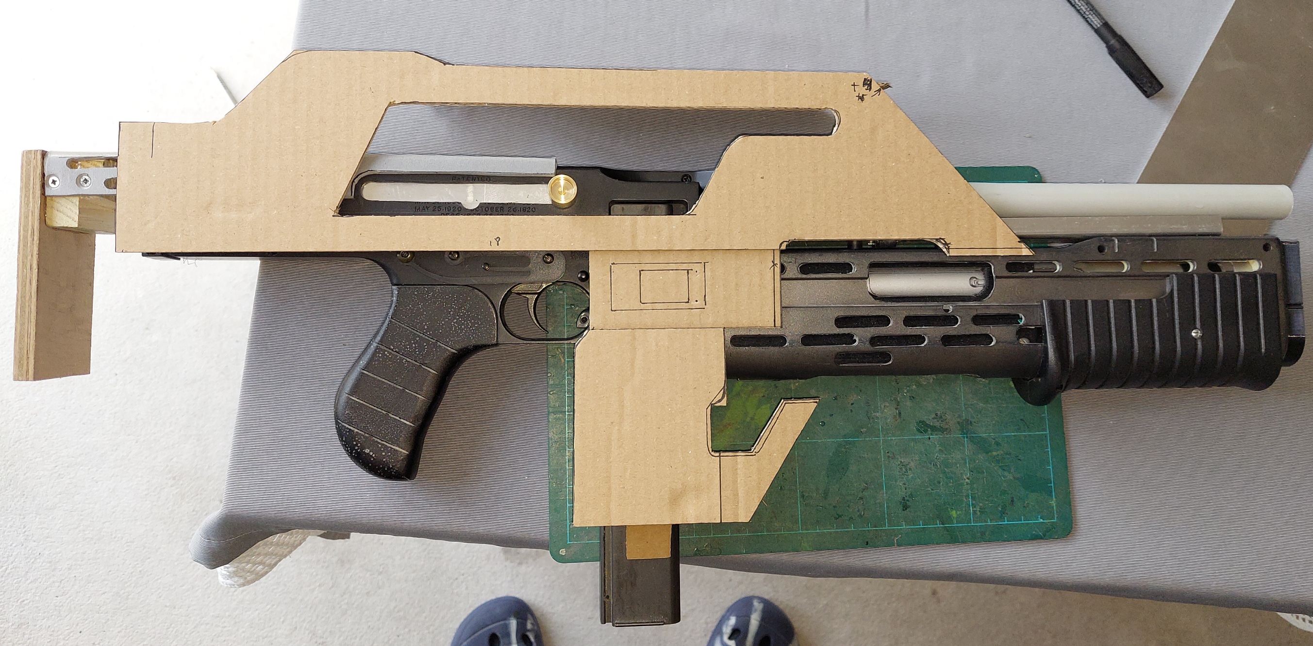 Once the sight was cut, I started with the extendable stock. The first thing was to make a pattern of the slots.