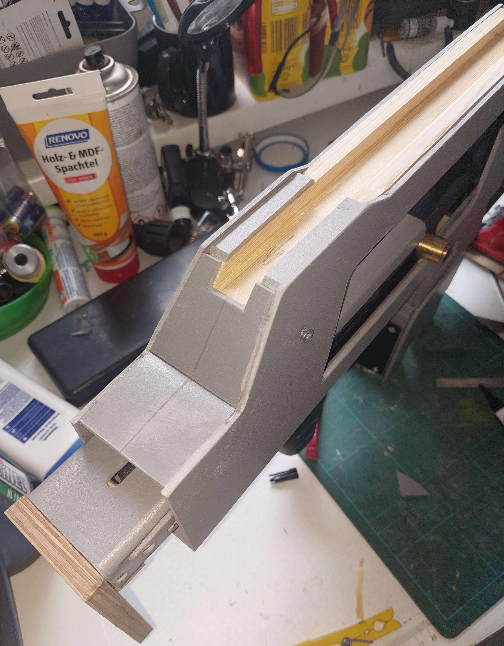 Both parts of the shrouts are joined on the thompson, to be able to disassemble them later and install the electronics. To ensure the perfect union of both parts, a complete Forex plate was used, which was then cut in half.