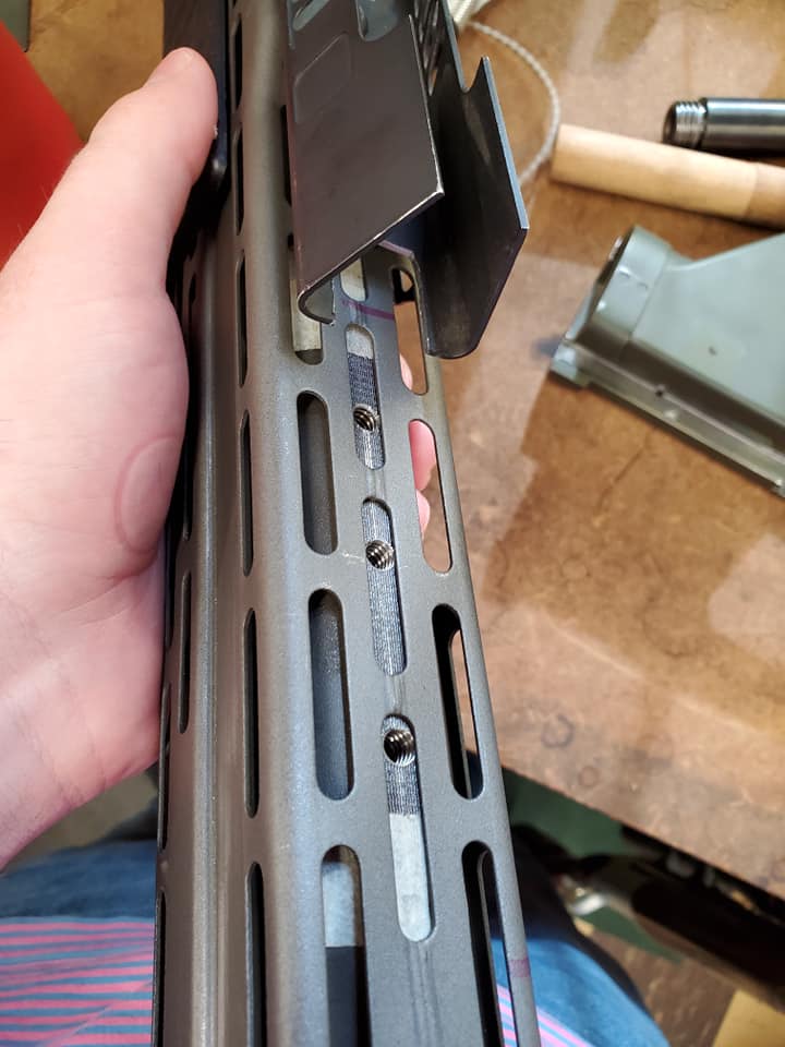 Launcher - Remington 760 in .30-06, also registered as an SBR. We went with the 760 instead of an 870 to get around prohibitions on short-barreled shotguns in Minnesota law. Added a Troy Claymore linear comp to increase the outer diameter of the barrel to closer to 12-gauge. SPAS cage is from a Tokyo Marui Airsoft, front block from SD Studios and pump from a Snow Wolf Airsoft.