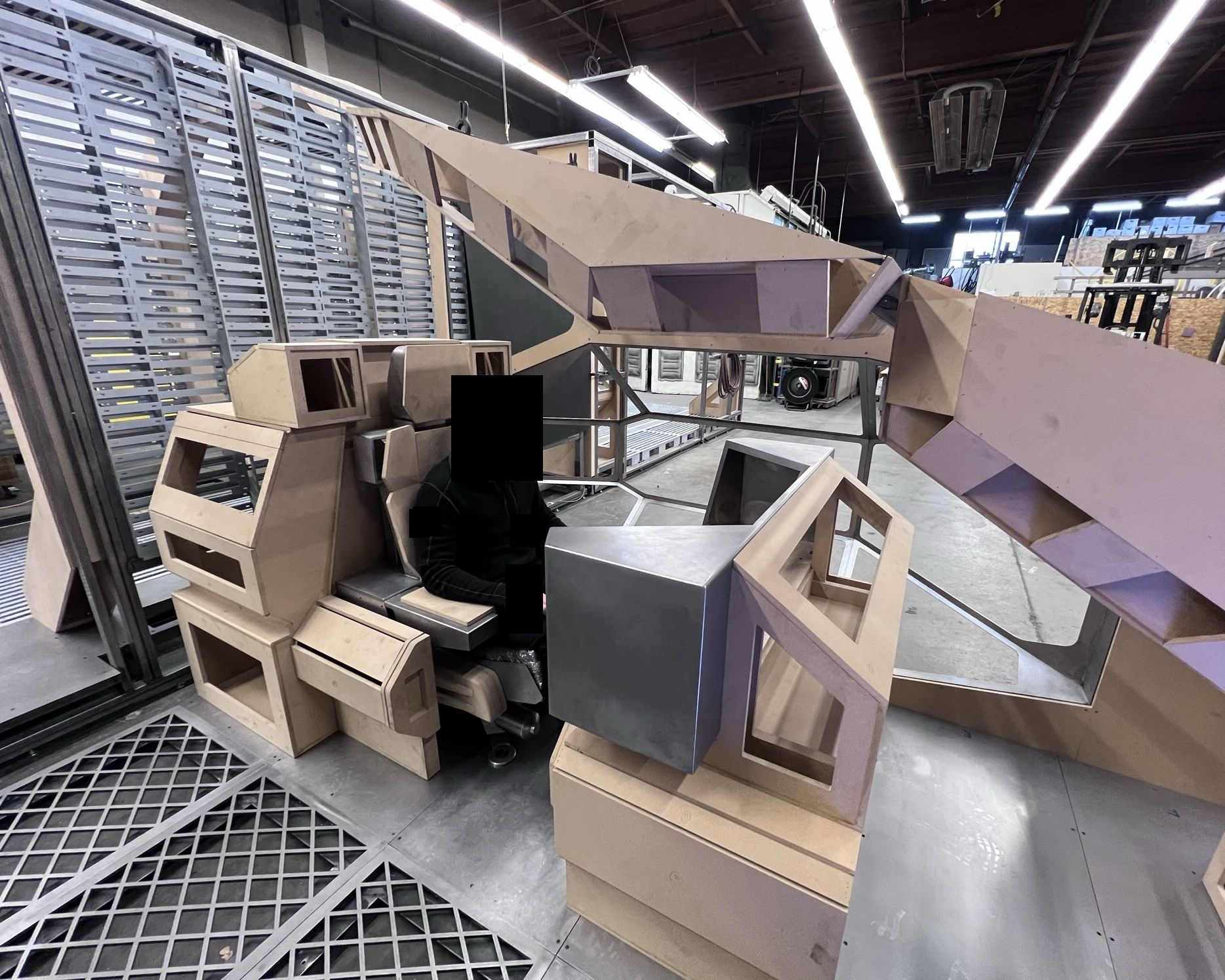 Lighting tests for the underfloor lighting in the bridge. The lighting panel is a fully controllable RGB. Due to the way the corridor goes inside a volume, we won't be able to do final lighting until it's in place. So at this point we were more focused on finding a flexible solution that we'd be confident would allow us to achieve our goals at the end.