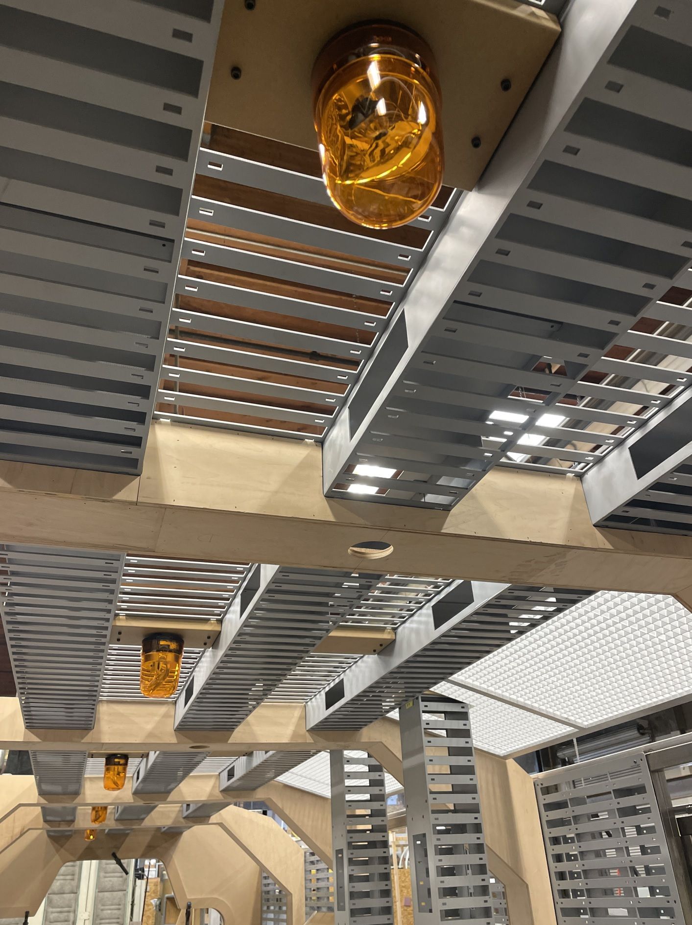 We couldn't resist seeing what the corridor looked like if we waited until it got dark. Even with just some primed pallets and raw MDF, it was getting exciting.