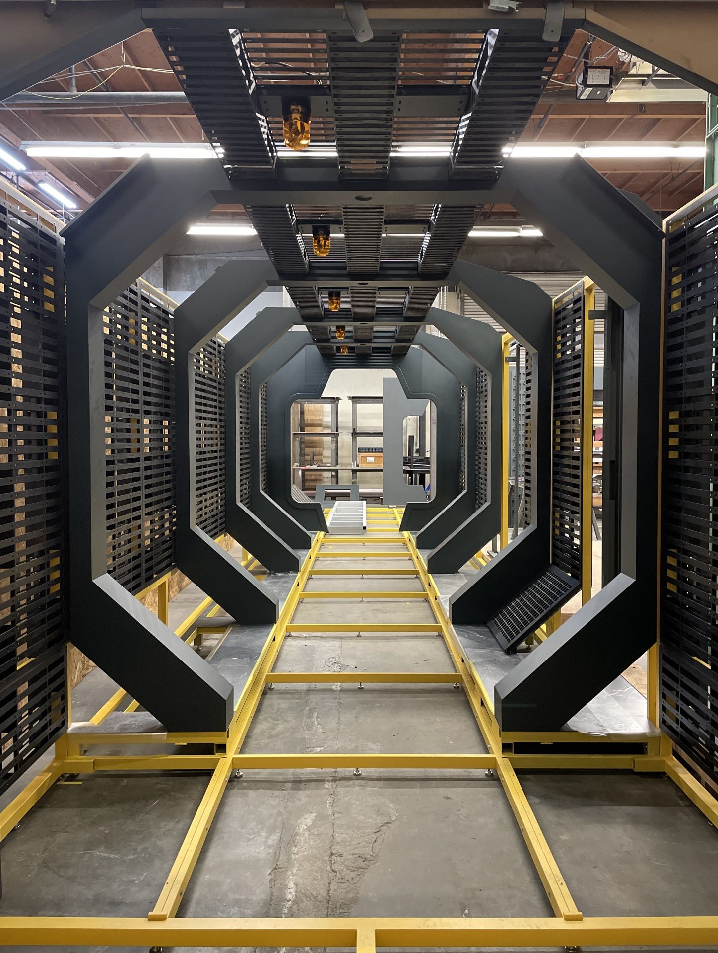 And here's a bonus pic of what it all looks like from the outside, sitting in the warehouse. That's the sliding airlock door on the truck in the foreground.