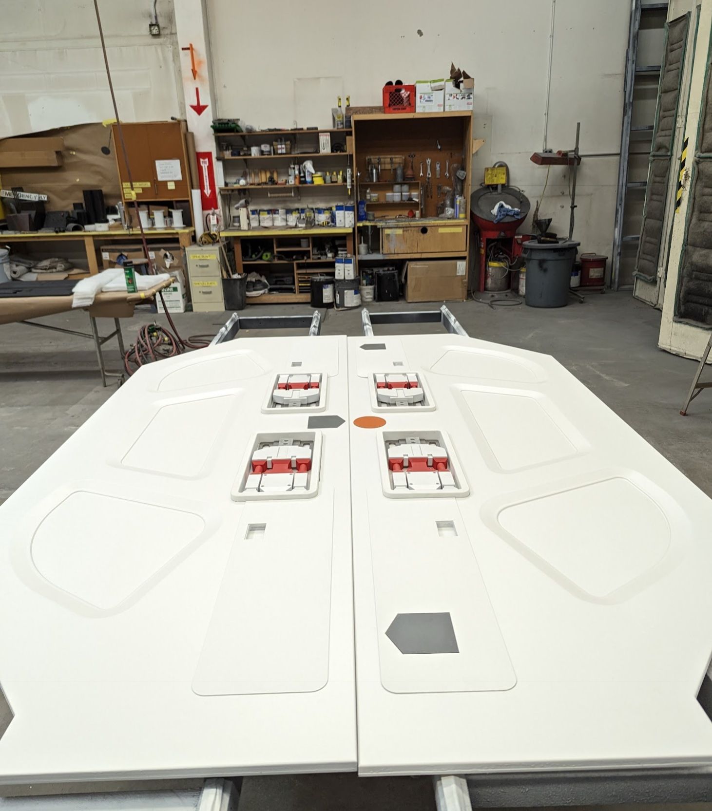 And here's a bonus pic of what it all looks like from the outside, sitting in the warehouse. That's the sliding airlock door on the truck in the foreground.
