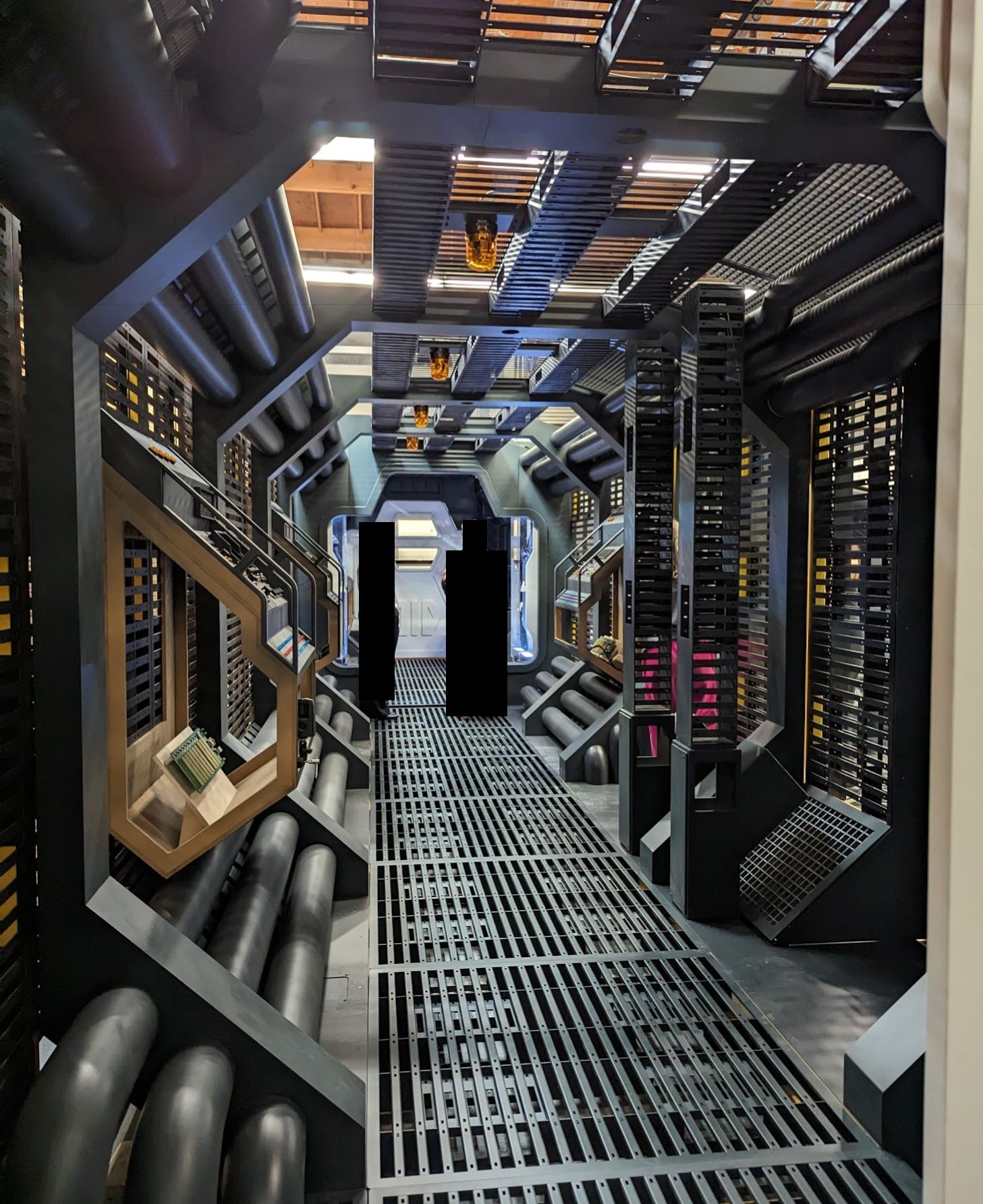 The Bridge was in a similar place. The right wall as you go in doesn't attach to the frame, which allows for this shot from a position outside of the Bridge itself. When it's in place, this won't be possible. Sorry for the blackouts, I didn't take a photo without people in it.