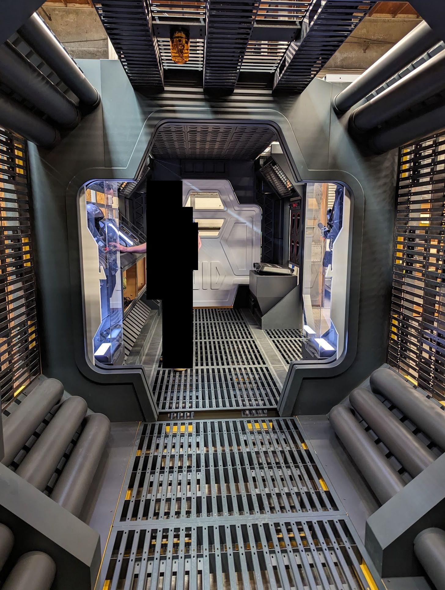 The Bridge was in a similar place. The right wall as you go in doesn't attach to the frame, which allows for this shot from a position outside of the Bridge itself. When it's in place, this won't be possible. Sorry for the blackouts, I didn't take a photo without people in it.