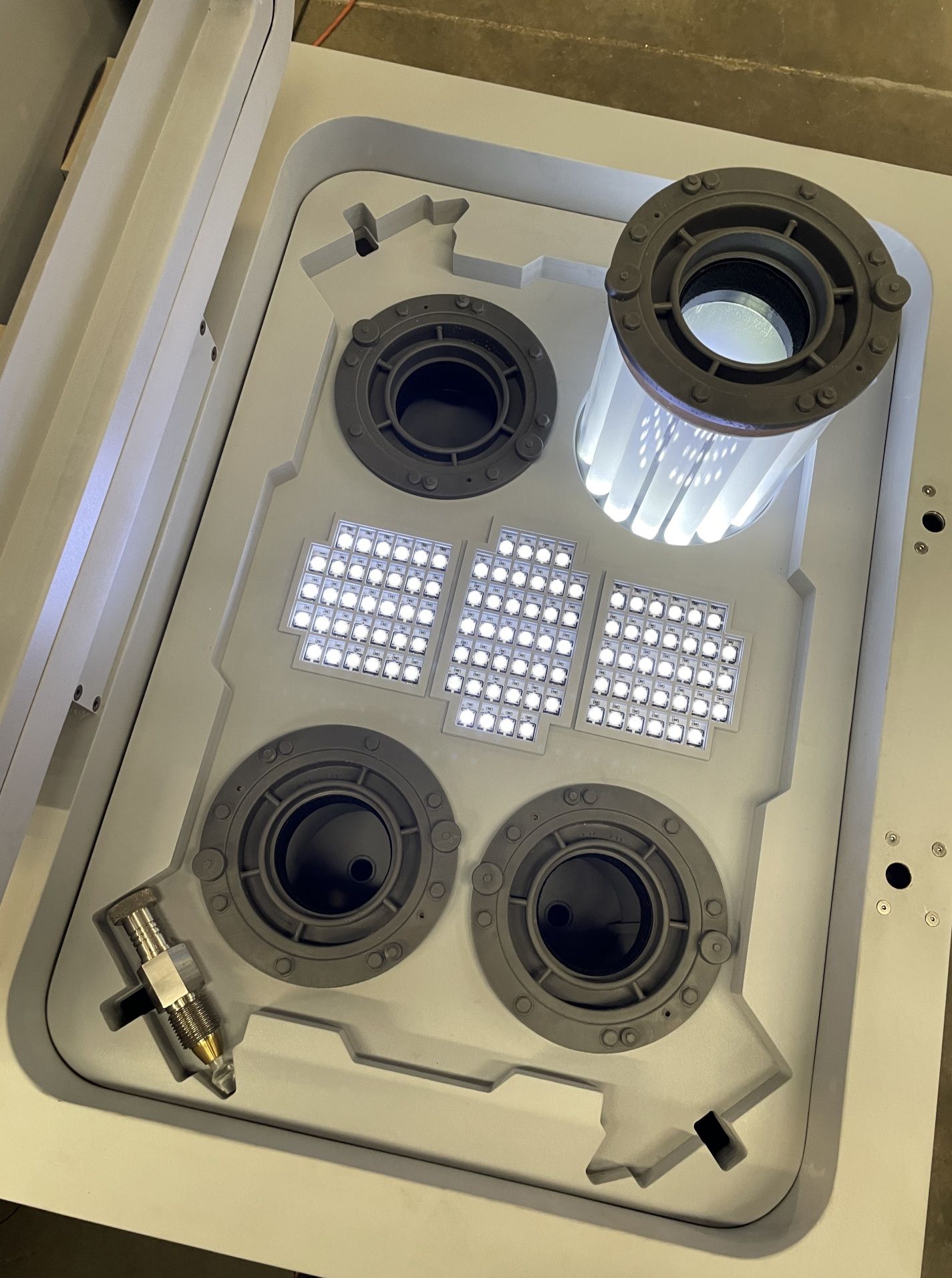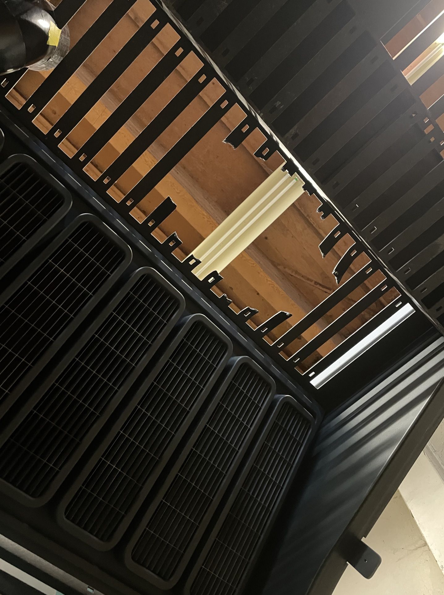 And here's a bonus pic of what it all looks like from the outside, sitting in the warehouse. That's the sliding airlock door on the truck in the foreground.
