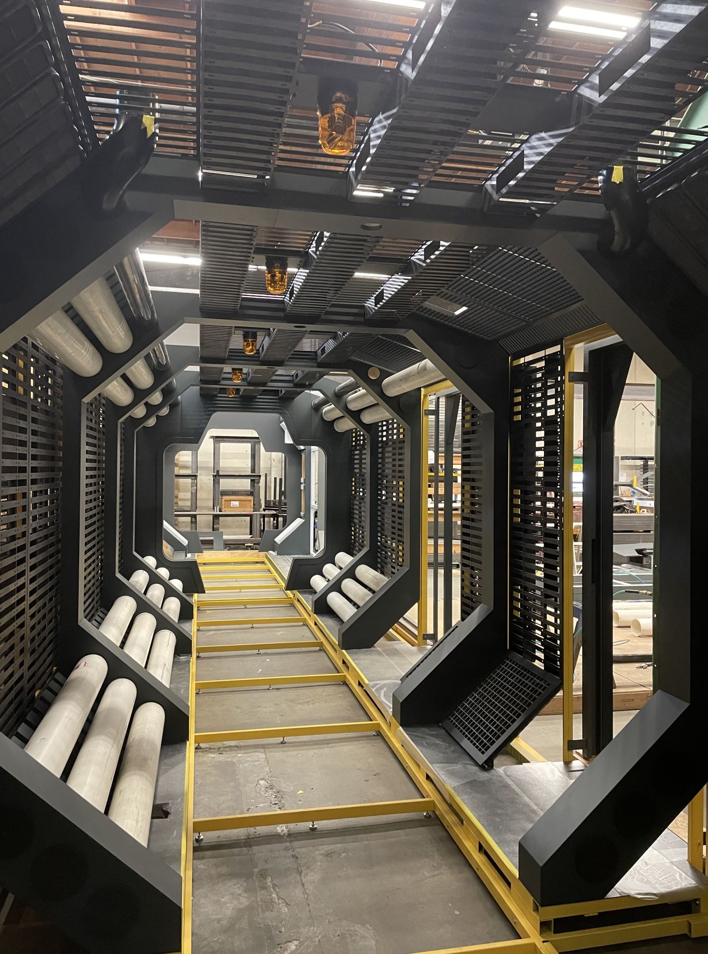 As mentioned, this is all still focused on the larger detail. We had a big pile of junk we'd been collecting for months that we were hoping to use to greeble out the space once the big shapes were all in there.