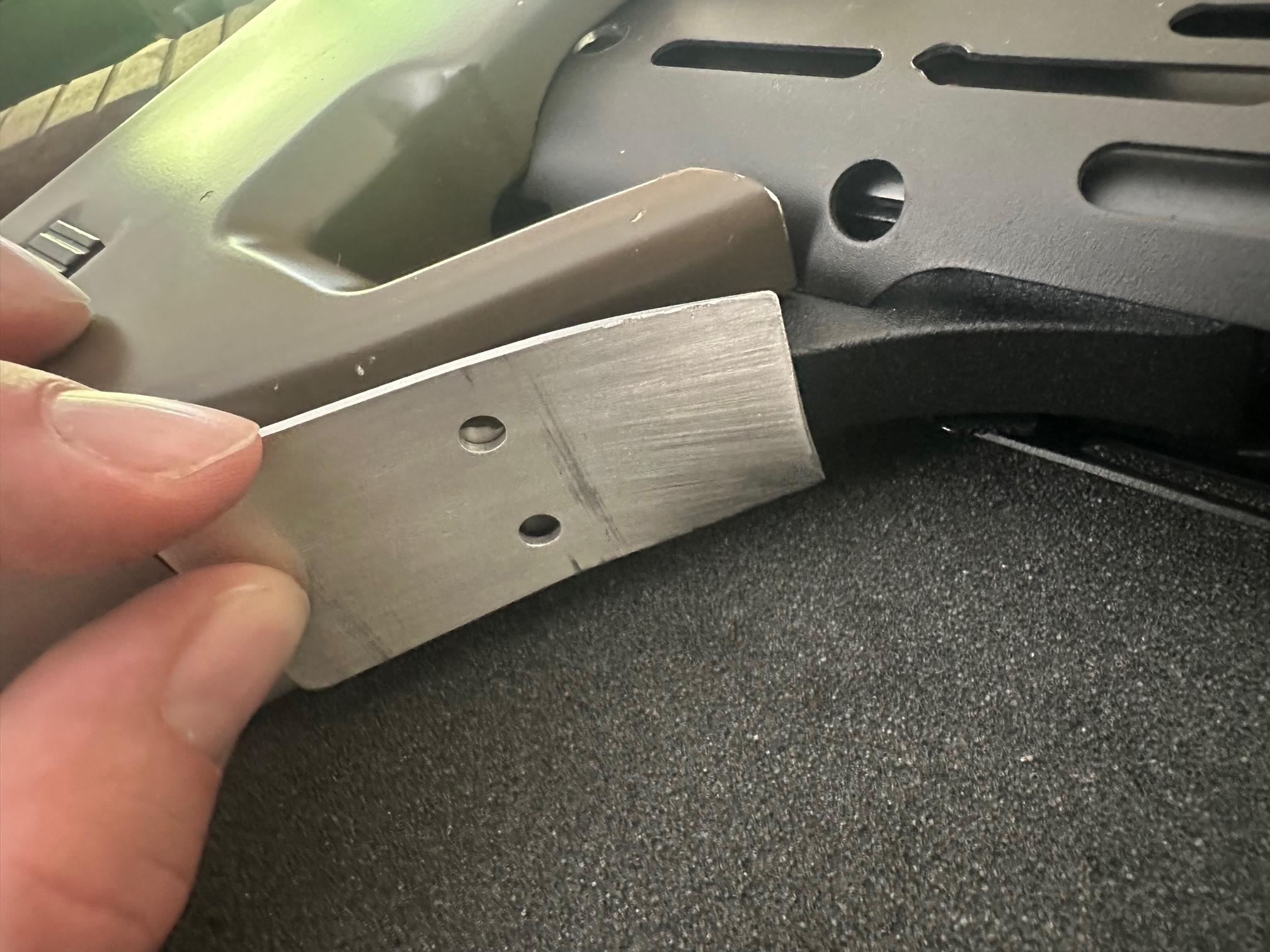 But wait, there‘s a steel part just where the bolt sits in its closed position. This is a separate part held in place by screws on my full steel kit, not sure if it‘s molded into the upper receiver on the original WE part: