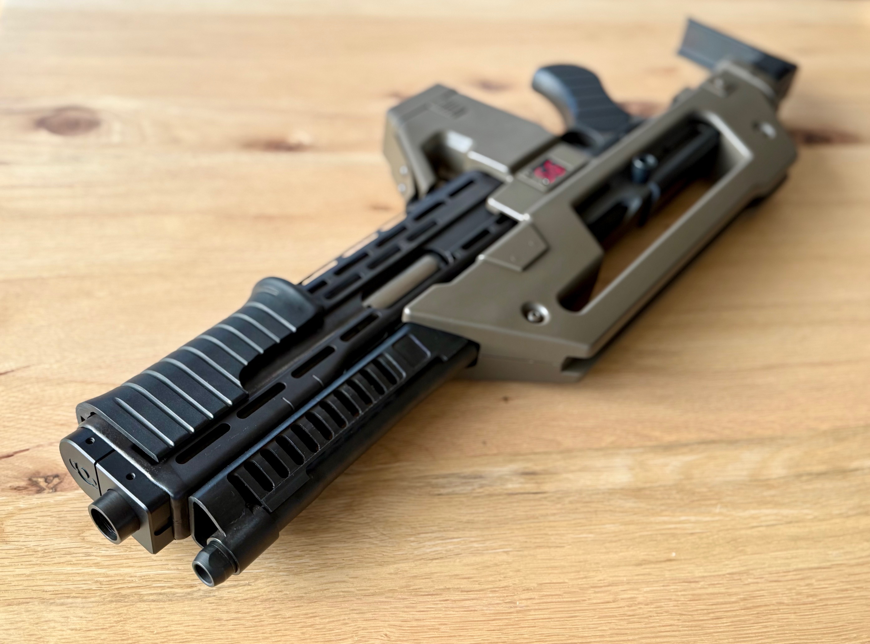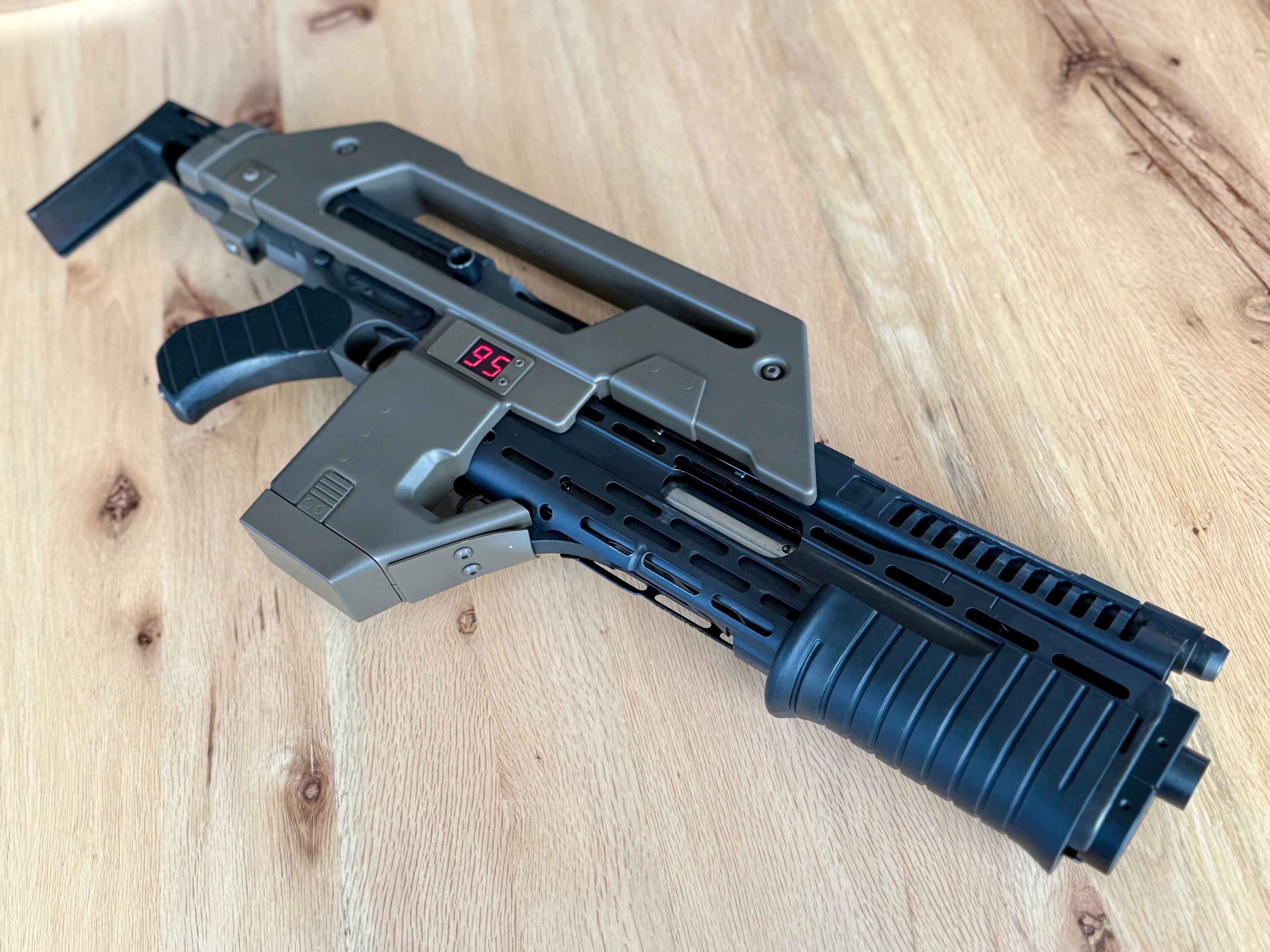 Here‘s the problem: there‘s very little space inside the rifle, and I needed a way to electronically check if the bolt was closed or pulled back (this switch is also needed to count down with each actual shot when in airsoft mode, i.e. every time the bolt slams forward). But where?