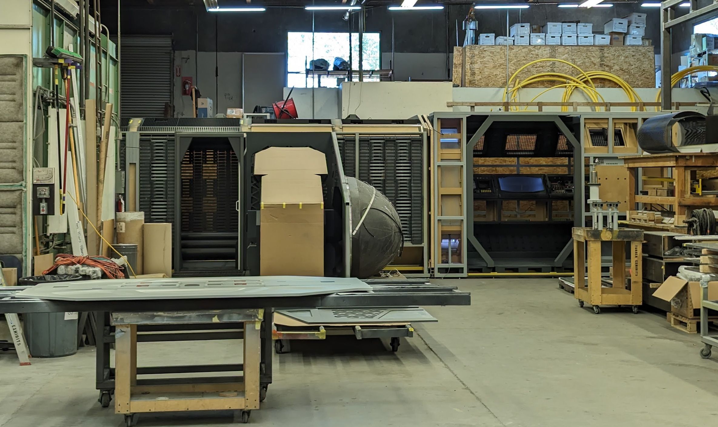 As mentioned, this is all still focused on the larger detail. We had a big pile of junk we'd been collecting for months that we were hoping to use to greeble out the space once the big shapes were all in there.