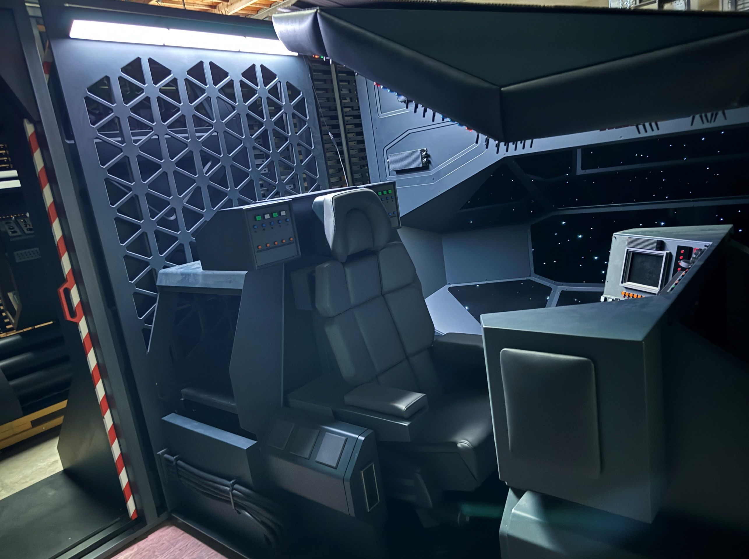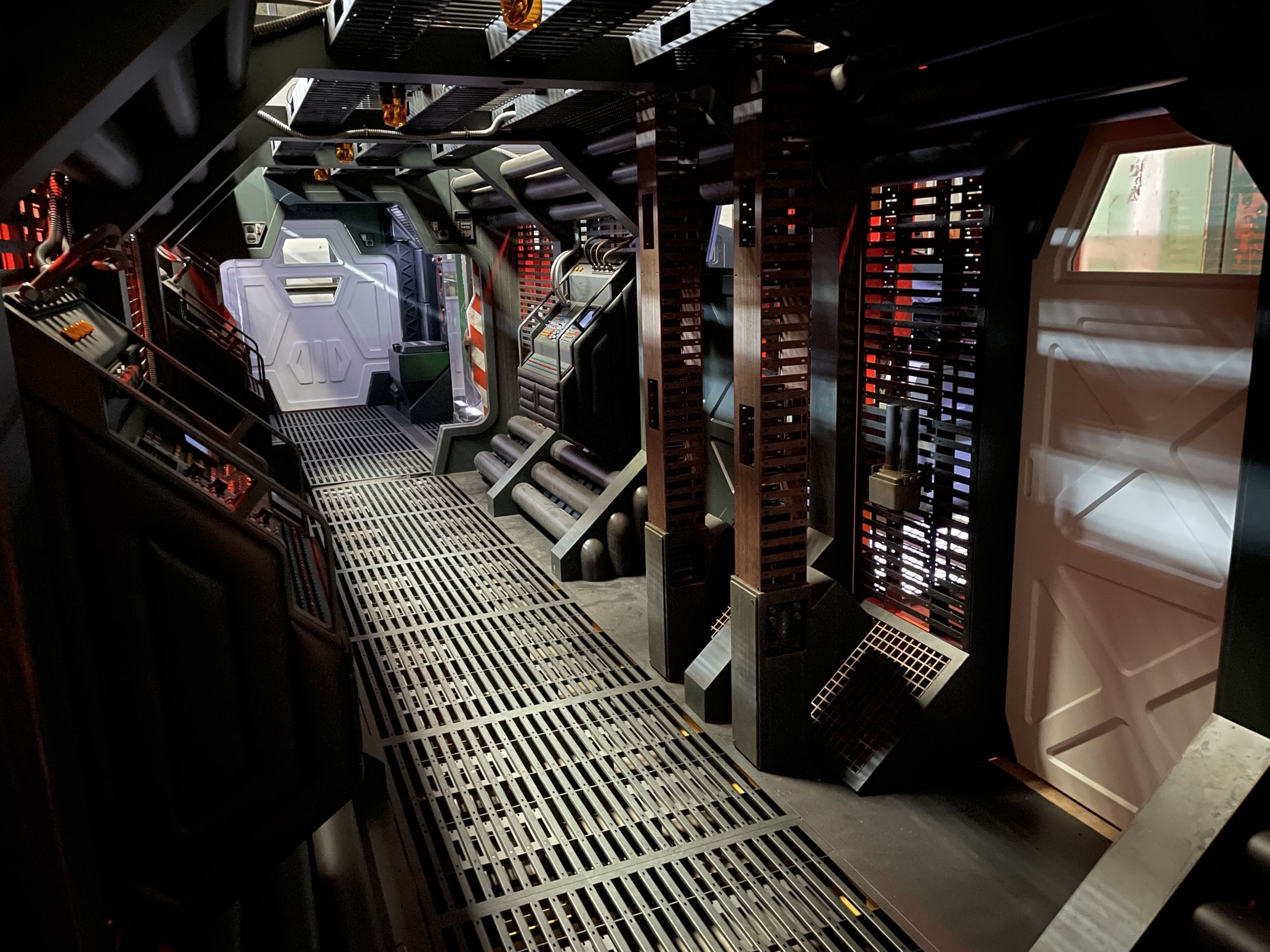 Another shot at the bridge window, but the reflection of the undergrate lighting behind me was more visible than it was in person. But this was the best photo I took of the flight console detail at the time, with what felt like the appropriate videos running on it.