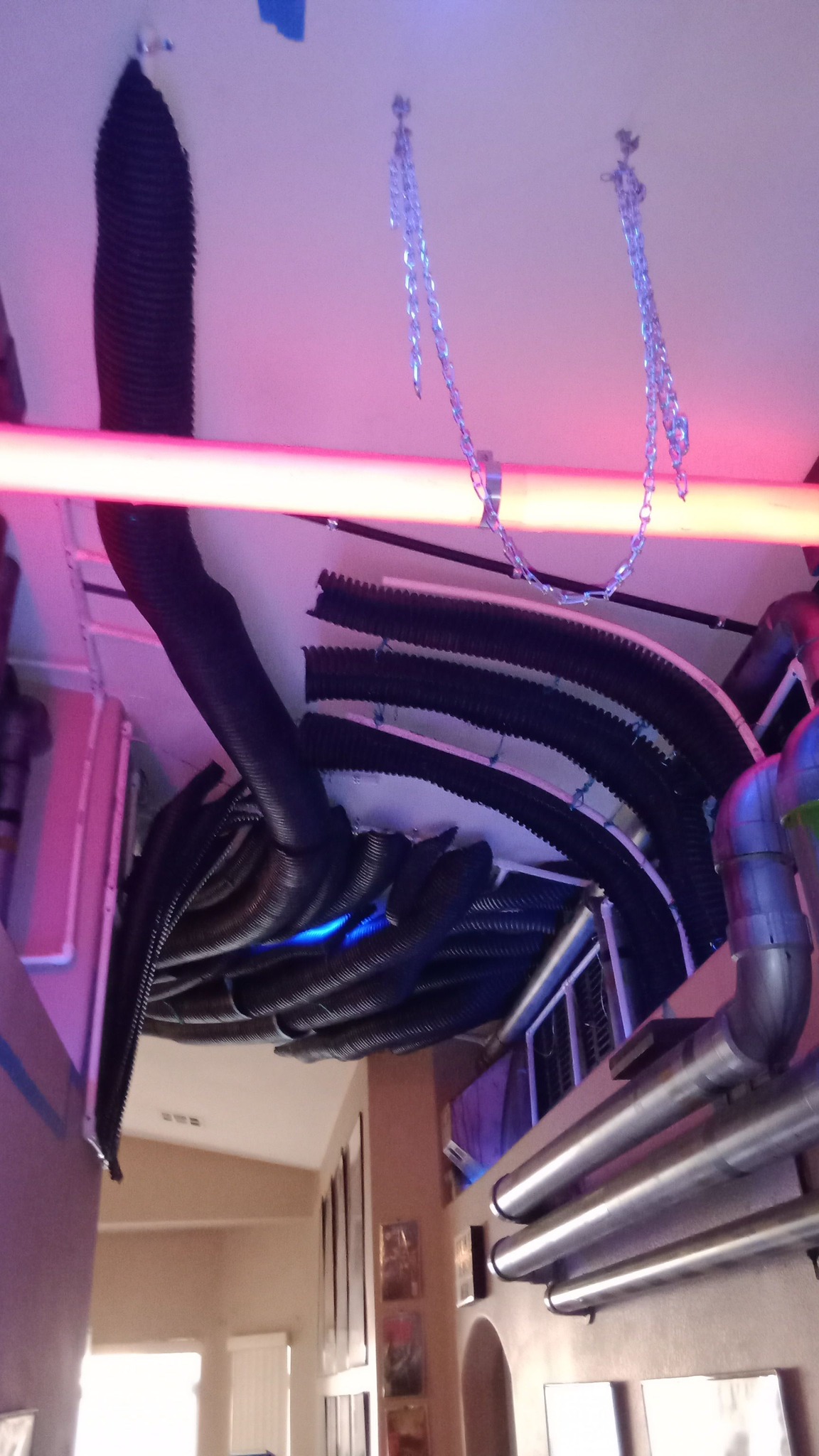 Thanks... I used a heat gun on the pvc frames... so far the pipes i've just been cutting and trimming them into place. So far the ceiling section weights 50lbs. Probably be at least 20lbs heavier still .. maybe more.