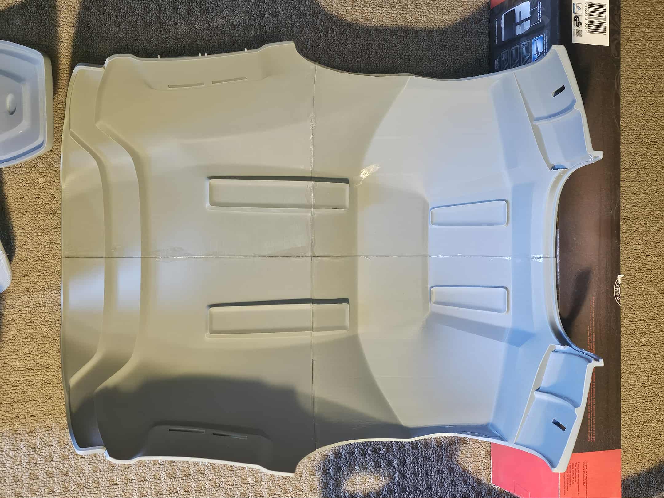 the shoulder lamp and greebles for the chest plate are still required prints. but the shoulder lamp is an extra that does not really need to be part of the final costume. in the coming months, bogging, sanding and final prep work will be done on the masters, then molding will begin. i will probably also sharpen the edging on the chest and abs V lines, re twirk the bicep guard to be a bit sharper at the base, ( bicep and Knees will be polyurethane rubber. and each piece of the shoulder sections on the chest and back plate will be cut to wearers specs, with piano hinges attached to create the clam shell effect while keeping the joins flush.
