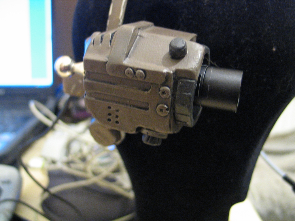 I'll be boring through the camera housing, allowing the camera to slide in, with the cables coming out the back. I'll also be taking a chunk out of the side so the camera housing can be attached to one of the Racal's earpieces.