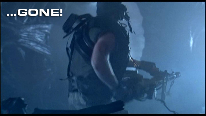 2) They use no fewer than 3 different rifles in the "Ripley rescues Newt" sequence. I knew about the first and last versions, but never noticed the "Hero-Stunt" version pictured below.