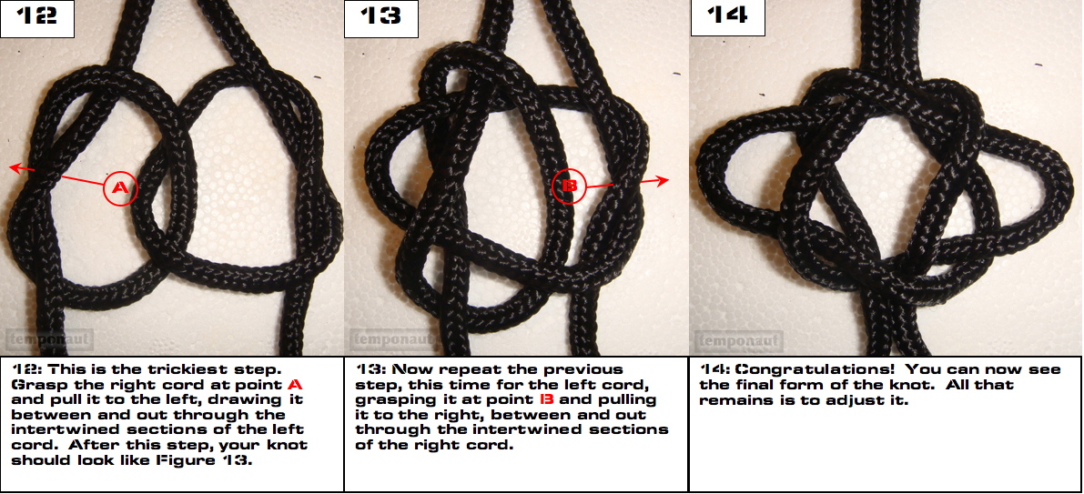 My guess is that it may be easier to tie the knot by following the photos and ignoring the text... but I've included the text anyway, just in case the photos aren't clear.