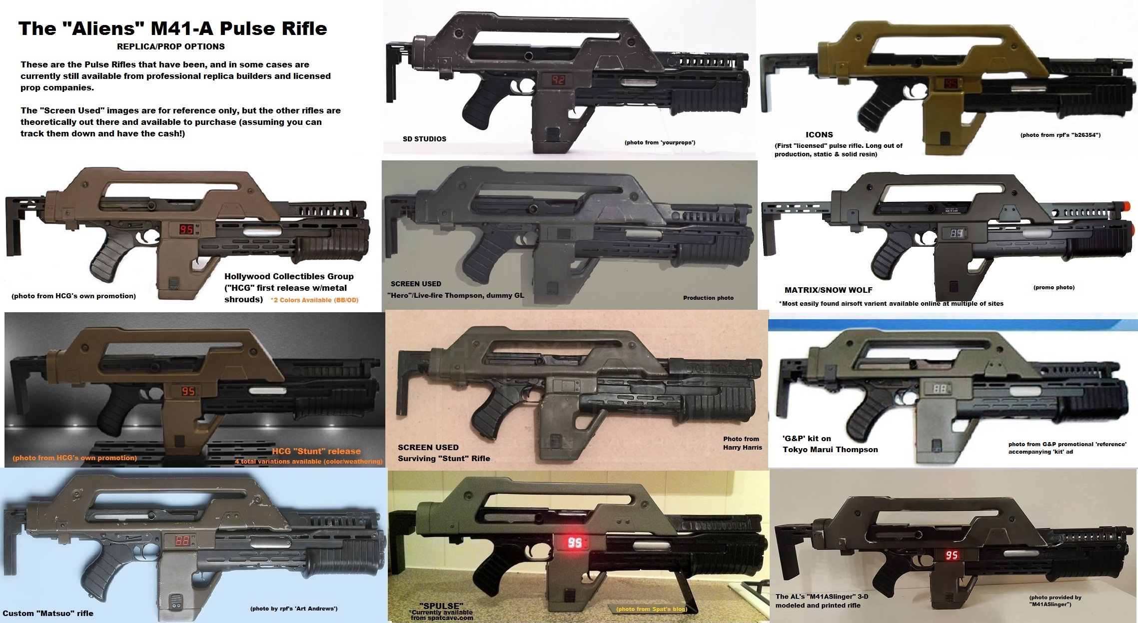 **Not pictured are the extremely common "3-D printed" rifles on ebay. They are all over the place right now, and the vast majority are NOT original works, but rather 3-D mocked up copies of the Snow Wolf/Matrix Airsoft rifles (including accuracy flaws from them). They may be affordable, but just beware.
