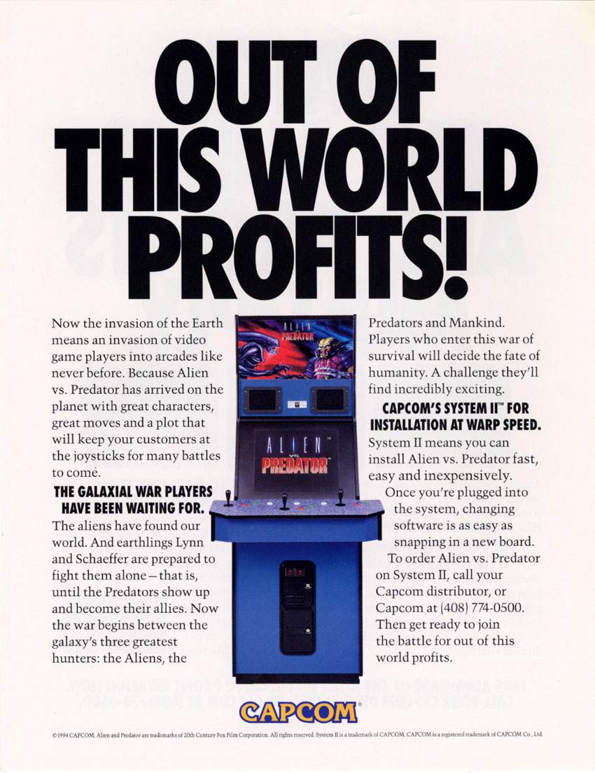 Here's a partial list, I'll format it all properly when I can: Alien Video Game Cartridge Platform: Atari 2600 Alien Video Game (Sharedata/Load & Go Software/Green Valley Pub.) Platform: Commodore 64/128 Screenshots: http://alienscollection.com/comm64screen1.gif, http://alienscollection.com/comm64screen2.gif, http://alienscollection.com/comm64screen3.gif Alien Video Game (Argus Press Software) Platform: ZX Spectrum & Commodore 64 Screenshots: Aliens (Activision) Floppy disk game for Apple, IBM, Commodore 64, ZX Spectrum, Amstrad CPC, Commodore Amiga based on 2nd film Screenshots: http://alienscollection.com/comm64screen4.gif, http://alienscollection.com/comm64screen5.gif, http://alienscollection.com/comm64screen6.gif, http://alienscollection.com/comm64screen7.jpg, http://alienscollection.com/comm64screen8.jpg Aliens (Electric Dreams, UK) Floppy disk game for ZX Spectrum, Commodore Plus 4, Commodore 64, Amstrad CPC, MSX based on 2nd film Screenshots: http://alienscollection.com/comm64screen9.gif, http://alienscollection.com/comm64screen10.gif, Aliens (Square) Platform: Nintendo Entertainment System/Famicom Additional information: http://www.1up.com/news/lost-aliens-movie-nintendo-game Notes: this game was never commercially released Aliens (Square) Platform: MSX Gameplay footage: http://www.youtube.com/watch?v=KWwbWg7uxyE Additional information: Alien 3 Video Game Cartidge (LJN) Platform: Nintendo Entertainment System Alien 3 Video Game Cartidge For Super Nintendo Alien 3 Video Game Cartidge For Nintendo Game Boy Alien 3 Video Game Cartridge For Sega Master System Alien 3 Video Game Cartridge (Arena) For Sega Genesis and Gamegear Alien 3: The Gun (SEGA) Platform: Arcade Additional information: http://alienscollection.com/a3thegun.jpg Alien vs. Predator Video Game Cartridge (Japan) For Super Famicom (Nintendo) with exclusive versus mode and different box art Alien vs. Predator Video Game Cartridge (Activision) For Super Nintendo Alien vs. Predator Video Game Cartridge (Activision) Platform: Nintendo Game Boy Alien vs. Predator Video Game Cartridge Platform: Atari Jaguar Aliens: A Comic Book Adventure Platform: CD-Rom based on Dark Horse comic series Alien Trilogy (Akklaim) Platform: 1st person shoot-em-up for Playstation, Saturn and PC. Operation Aliens (Tiger Electronics) Platform: Hand held video game Aliens vs. Predator (Fox Interactive) For Mac & PC Alien Resurrection (Fox Interactive) Platform: Playstation Aliens Online Platform: Internet game by Kesmai for PC Sci-Fi Pinball (Fox Interactive) For Mac & PC. CD-ROM 3-D Pinball game featuring themes from Alien, Predator, The Fly and Buffy the Vampire Slayer H.R. Giger Cyberdreams Screensaver (MGM Interactive) Platform PC Screensaver Aliens: Thanatos Encounter (THQ) Platform: Color Gameboy Aliens: Colonial Marines (Fox Interactive/EA/Check Six) Platform: Playstation 2 Gameplay footage: http://uk.gamespot.com/aliens-colonial- ... 1-2766496/ Additional information: http://www.ign.com/articles/2002/04/25/ ... al-marines, http://www.avpgalaxy.net/games/aliens-c ... rines-ps2/ Screenshots: Notes: this game was never commercially released Predators (Fox Digital/Chillingo/Angry Mob Games) Platform: iOS Gameplay footage: http://www.youtube.com/watch?v=jGGxou0Gh8s Additional information: http://www.angrymobgames.com/predators.html Aliens: Infestation (SEGA) Platform: Nintendo DS Gameplay footage: http://www.youtube.com/watch?v=ZTcfICWSugU Additional information: http://www.ign.com/games/aliens-infestation/nds-868805 Screenshots: Aliens: Colonial Marines (SEGA/Gearbox) Platform: XBox, PS3, PC Gameplay footage: Additional information: Aliens vs. Predator Evolution (Fox Digital/Angry Mob Games) Platform: iOS, Android Gameplay footage: http://www.youtube.com/watch?v=Ot8baNzjJvs Additional information: |