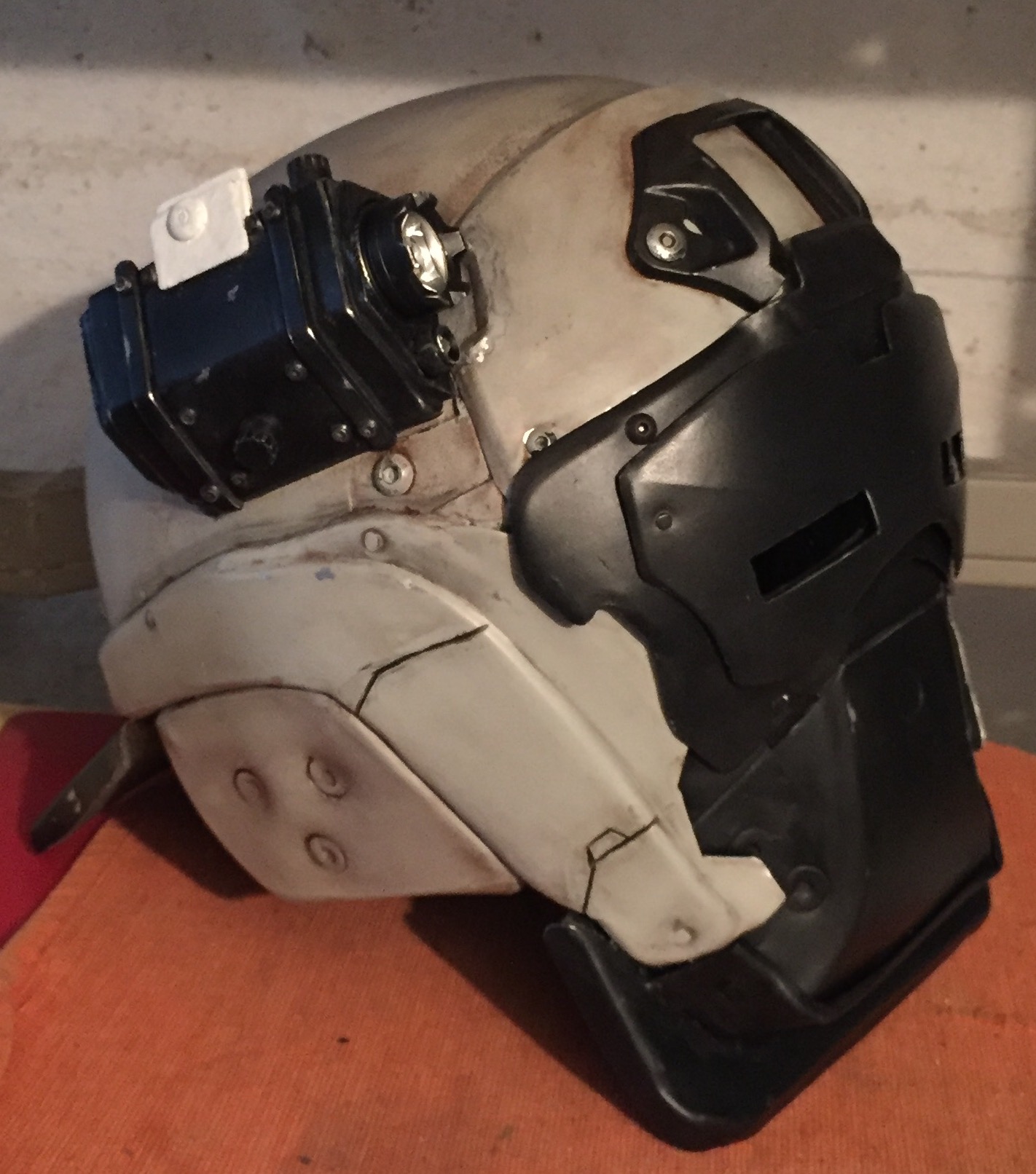 The helmet is completely finished and as you can see I used torches instead of a camera. I just used what I had lying in my big bits and pieces box just to get it finished and with that Note my WY Brut costume is basically finished just a phew Verry small alterations to make and that's it:)