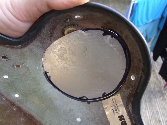 I glued the metal plate into position with a generous amount of epoxy resin. Once the glue was set I used body filler to fill all the gaps. Building up the curved wall on the kidney shaped side was the biggest pain. It is all then sanded back using the screen used helmet photos as guidance.