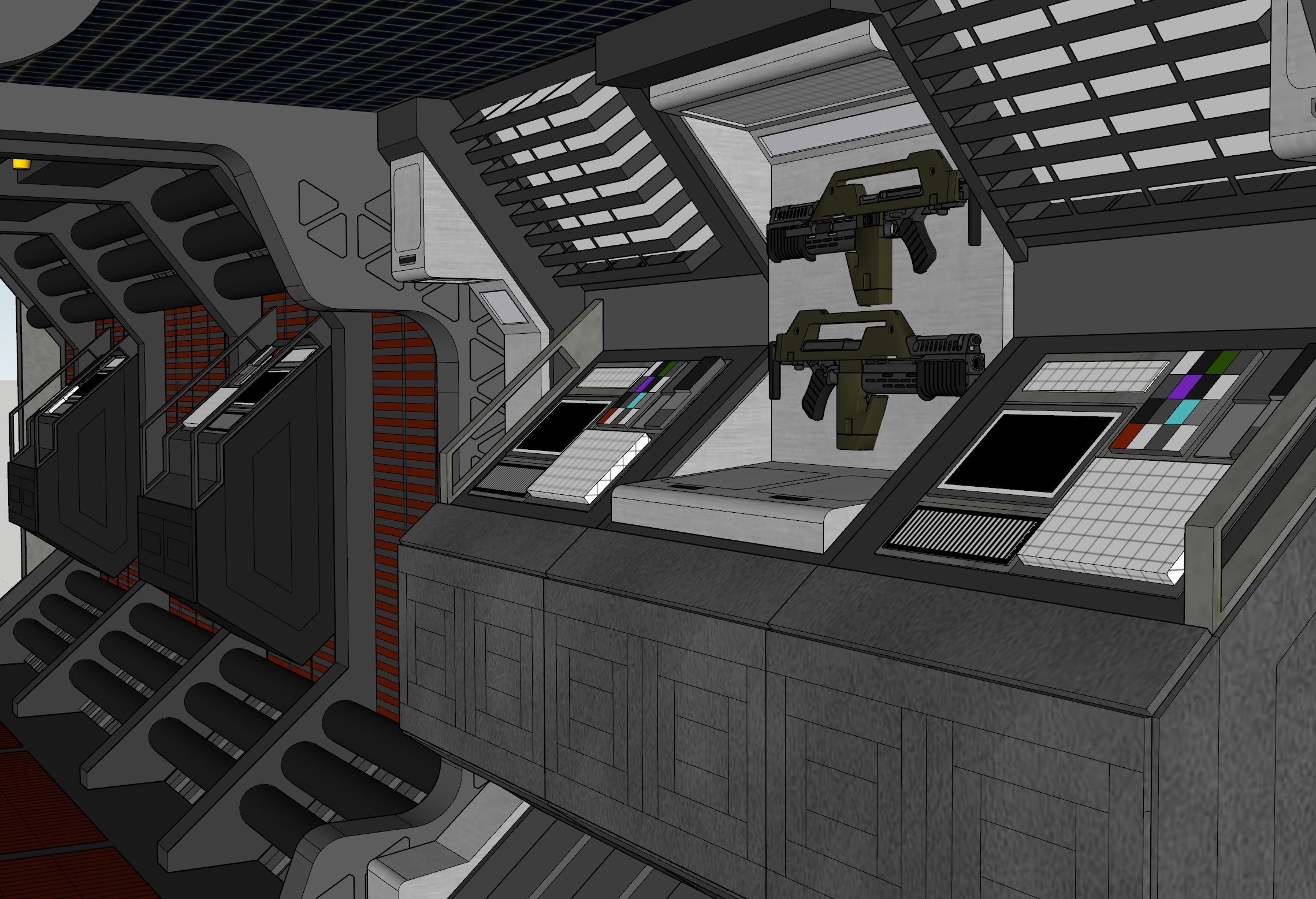 my pulse rifle build in 2021, I started trying to collect props from Alien / Aliens. In the years since, I've been lucky enough to collect some, thanks in part to Harry in 2022. But back in 2021, I realized that even if I did manage to find any, I wouldn't really have a place to display them. At the time, I was in the process of building a new house, and long story short, I started planning on a making one of the house's corridors replicate a section of the Nostromo.