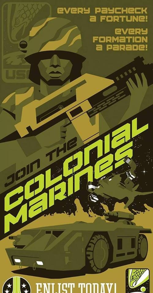 3. Possible captions to say; “COLONIAL MARINES NEED YOU”, “ENLIST HERE”, “DEFENDERS OF EARTH”, “Every Formation a Parade”, Etc, Etc…. So many possibilities we’ll decide together.